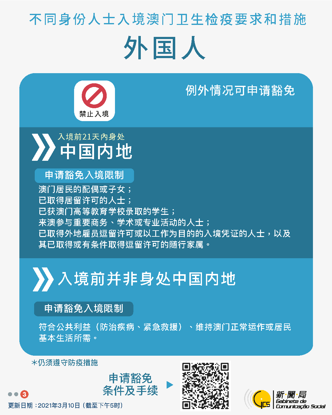 【圖文包】2021/03/10最新入境澳門衛生檢疫要求和措施