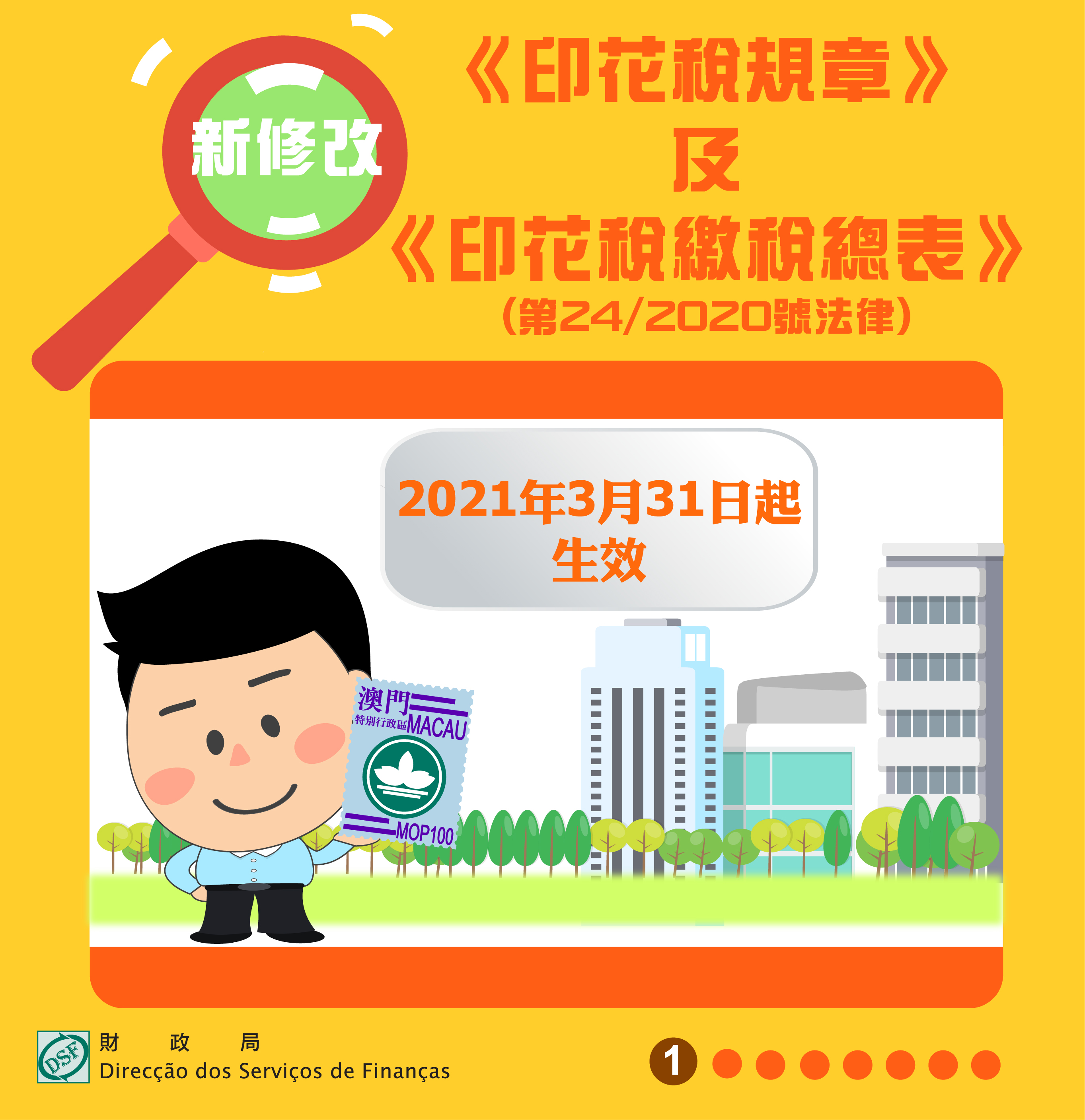 第24/2020號法律《修改〈印花稅規章〉及〈印花稅繳稅總表〉》已於2020年12月30日刊登於《澳門特別行政區公報》,並自公佈後滿九十日起生效,即2021年3月31日正式生效,並由法律正式生效當天起,財政局不再出售印花稅票。
