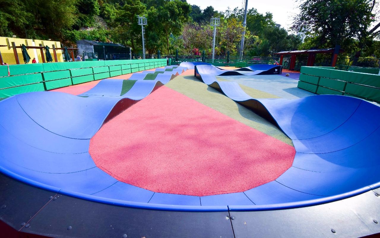 市政署持續優化各公園設施,二龍喉公園內的兒童單車/滑板車場經重整優化後,早前練習場及植物迷宮區域已重新開放,而場內首次引入的Pump track(單車軌道),將於三月十六日(星期二)開放試運,為市民提供更多元化的活動場地。
