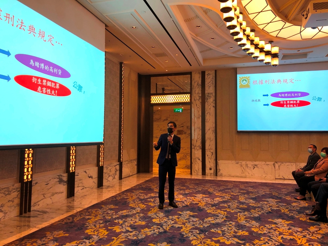 工作坊上,司警局刑偵人員講解局方報案程序及與博彩相關的最新犯罪趨勢,並透過播放防罪宣傳短片及分享真實案例,詳述網戀、投資理財及電話詐騙等犯罪手法,以及講解偽造文件、偽鈔、清洗黑錢等犯罪的法律知識,並向博彩業前線員工傳授防罪錦囊。其後,司警局刑偵人員與他們進行分組座談,解答他們工作和生活上遇到的治安問題,冀他們將防罪知識分享給親友,提升防罪意識及能力,共同防罪滅罪。