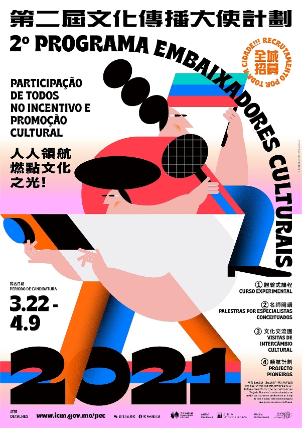 為培養學員對中華傳統及澳門文化的認知、自豪感及歸屬感,激發人才創新活力,文化局推出第二屆“文化傳播大使”計劃,即日起至4月9日接受報名。“文化傳播大使”計劃邀請到一眾文化及傳播領域的專家、學者及資深工作者擔任導師,透過一系列體驗式培訓課程、文化交流及領航計劃,加深學員對中華傳統及澳門歷史文化知識的瞭解,進一步認識澳門文化工作、提升審美能力及文化傳播技巧。培訓課程內容涵蓋中華文化賞析、澳門歷史城區及文化遺產、澳門社區故事、文化藝術鑑賞,活動策劃技巧與實踐,以及文化傳播技巧,並設有文化交流之旅,讓學員深入認識當地傳統文化的傳承與創新,擴闊視野;此外,學員可根據個人興趣、專長、經驗及影響力,結合課程與交流中的獲益,開展領航計劃,將創意創新理念貫穿於文化推廣實踐任務中,以肩負推廣、傳承及傳播澳門文化的使命。