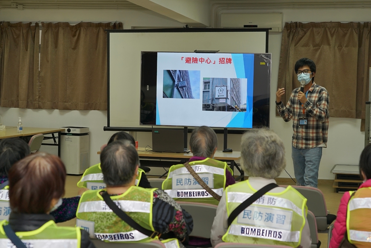 為進一步加強市民的防災減災意識及自救互助能力,確保於颱風及風暴潮來臨時能按照當局指示,迅速、安全有序撤離。於3月22日下午,在警察總局統籌下,消防局聯同社會工作局在民眾建澳聯盟會址舉行“颱風期間風暴潮低窪地區疏散撤離計劃”講座,及後更進行疏散撤離演習,藉此提升市民防災避險能力,同時深化本局與各部門的溝通協作機制,是次講座和演習共有51名市民參與。