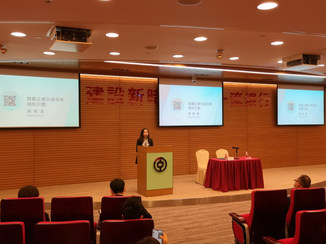 在中總的大力支持下,經科局今(24)日假澳門中華總商會大廈4樓(何賢紀念堂)舉辦工商業界專場講解會,詳細介紹了新法規涵蓋的可獲補貼投資項目、融資要件、補貼方式、申請程序,以及受益人應履行義務等內容。經科局副局長陳漢生、澳門中華總商會副理事長黃國勝及多個工商團體包括建築業、製造業、餐飲及零售、物流業等的約100名代表出席。