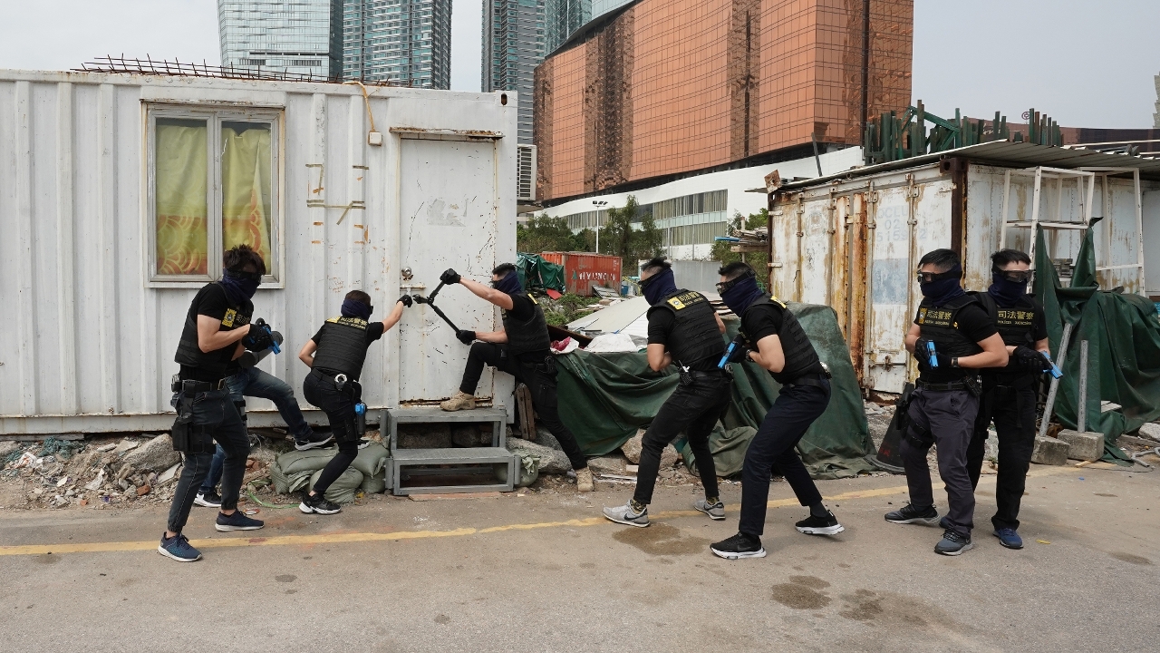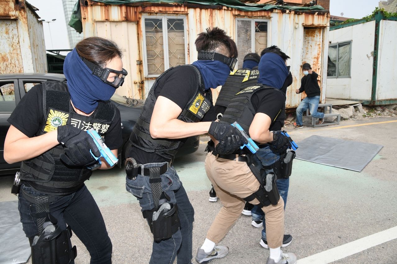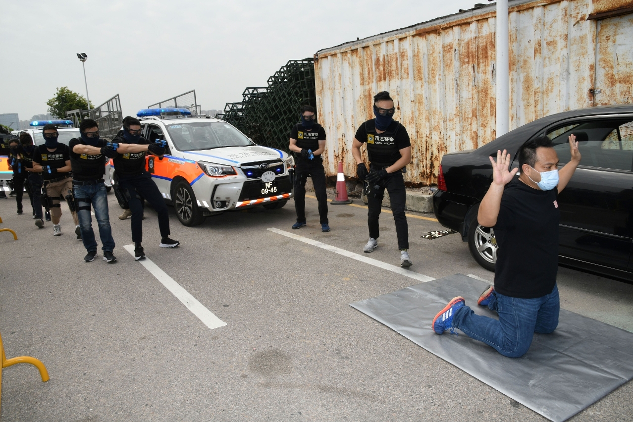 司法警察局舉行重大案件綜合演習,增強各刑事偵查和刑事技術部門間的應變、協調能力,冀能更快速、完善及有效地應對嚴重罪案。演習模擬司警局接報發生一宗兇殺案,經深入調查發現事件涉及毒品交易和非法禁錮,司警局各相關調查部門展開拘捕及營救行動,成功瓦解販毒團伙並解救被禁錮人士。