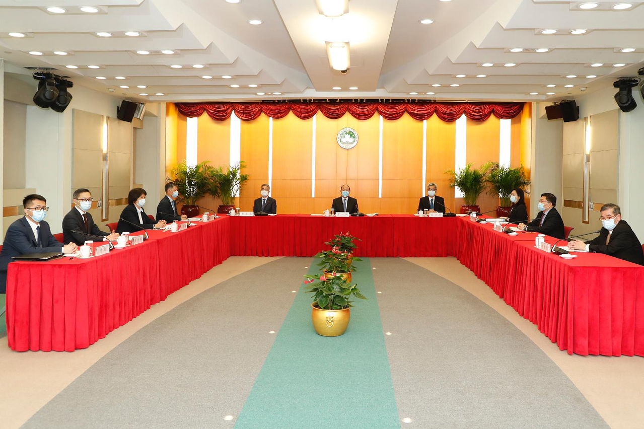 警察總局局長梁文昌、行政長官辦公室主任許麗芳、保安司司長辦公室主任張玉英、法務局局長劉德學、行政長官辦公室顧問林香生,以及保安司司長辦公室顧問曾翔等委員參與了會議。
