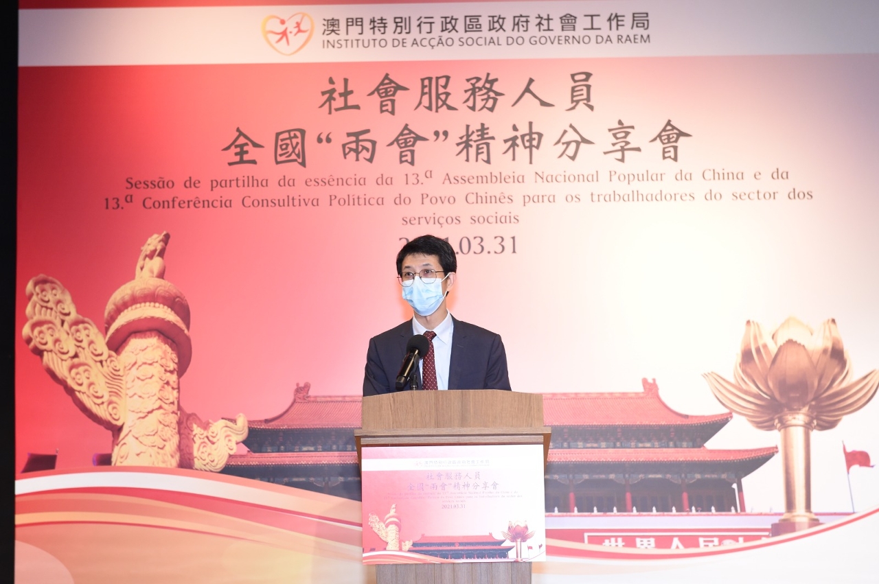 由社會工作局主辦「社會服務人員全國 “兩會”精神分享會」於3月31日下午在澳門旅遊學院啓思樓大禮堂舉行,逾100名社會服務人員聽取全國“兩會”精神,深入瞭解國家的發展情況。