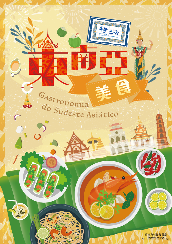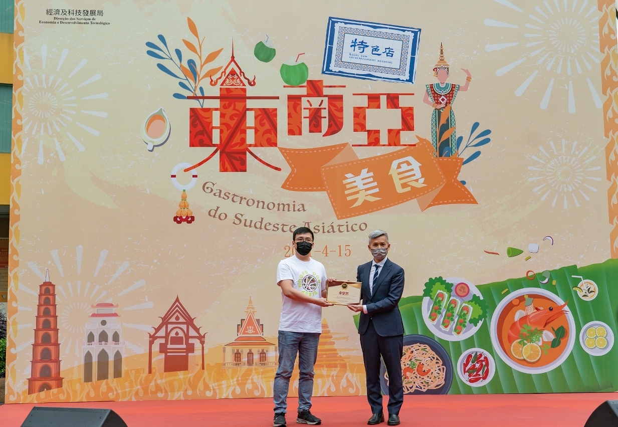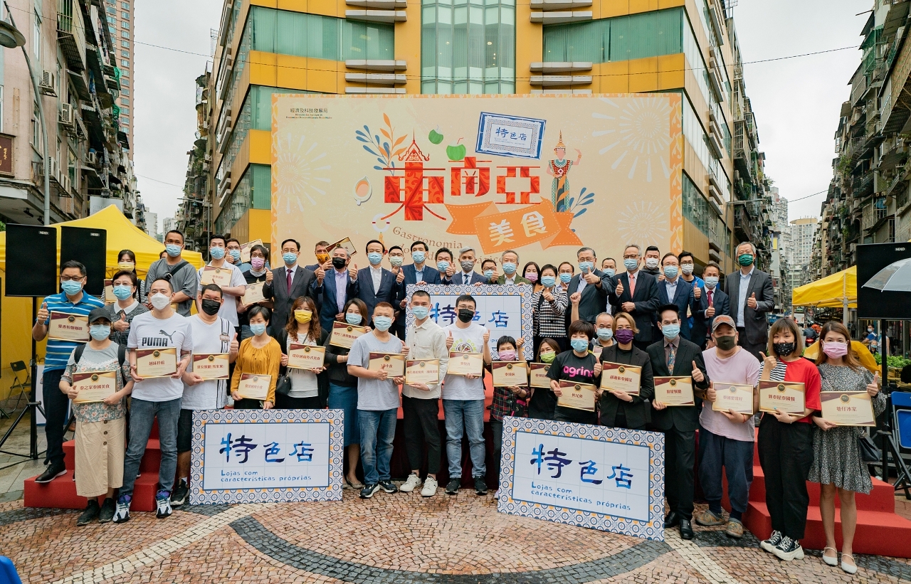 “澳門特色店計劃–東南亞美食”啟動儀式今 (15) 日於嘉路米耶圓形地(三盞燈) 舉行, 合共32間東南亞美食商戶,經地區商會推薦並由經濟及科技發展局審核認可後,新增成為特色店。連同首兩階段十月初五日街一帶及離島區的100間商戶,現時特色店已增至合共132間。