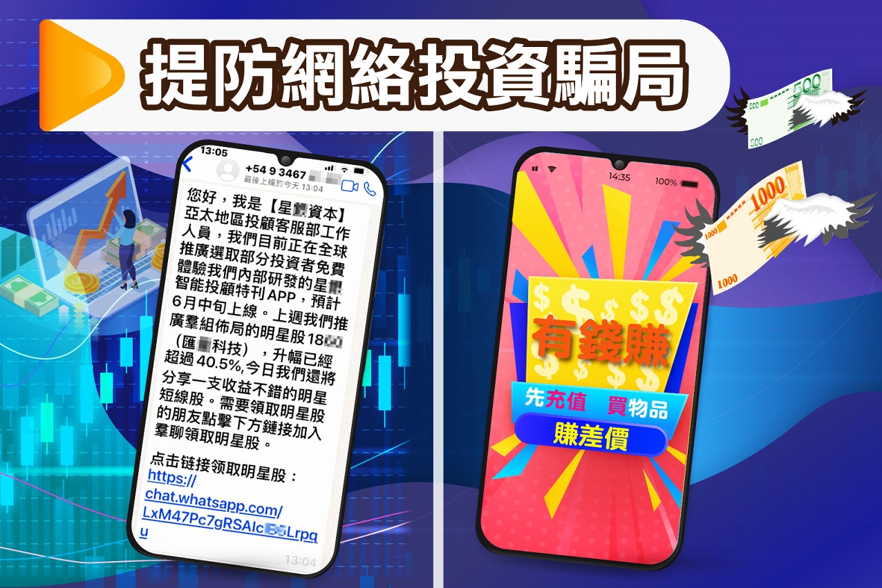 近日,網絡詐騙手法又再湧現,騙徒透過網絡社交平台或手機通訊軟件進行詐騙,有市民一時不察,遭受損失。為防受騙,司法警察局提醒市民必須小心防範和分辨網絡投資訊息,免讓不法份子有機可乘。