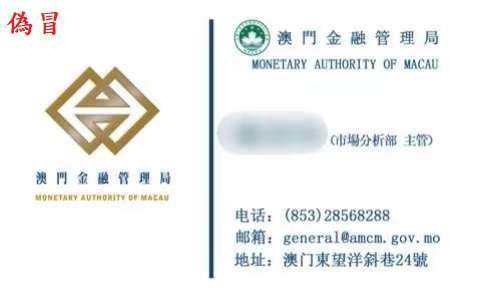 澳門金融管理局近日接獲舉報,懷疑有人製作假冒金管局職員的名片,在社交平台及通訊軟件遊說投資金融產品,金管局已向警方報案,並呼籲公眾提高警惕。