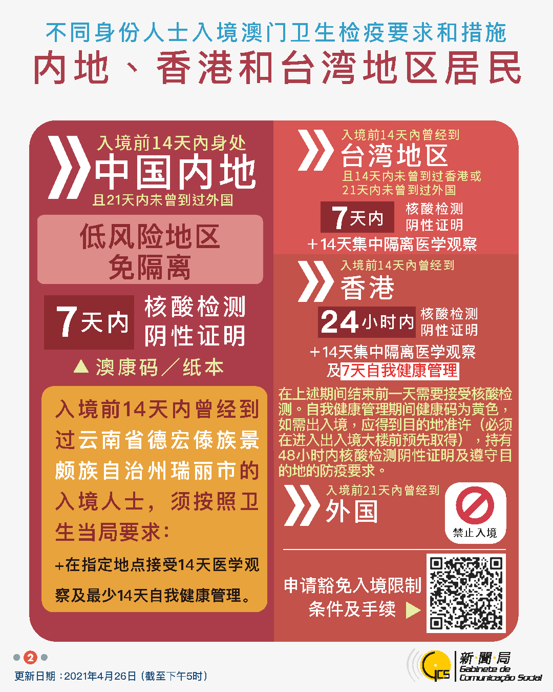 【圖文包】2021/4/26最新入境澳門衛生檢疫要求和措施