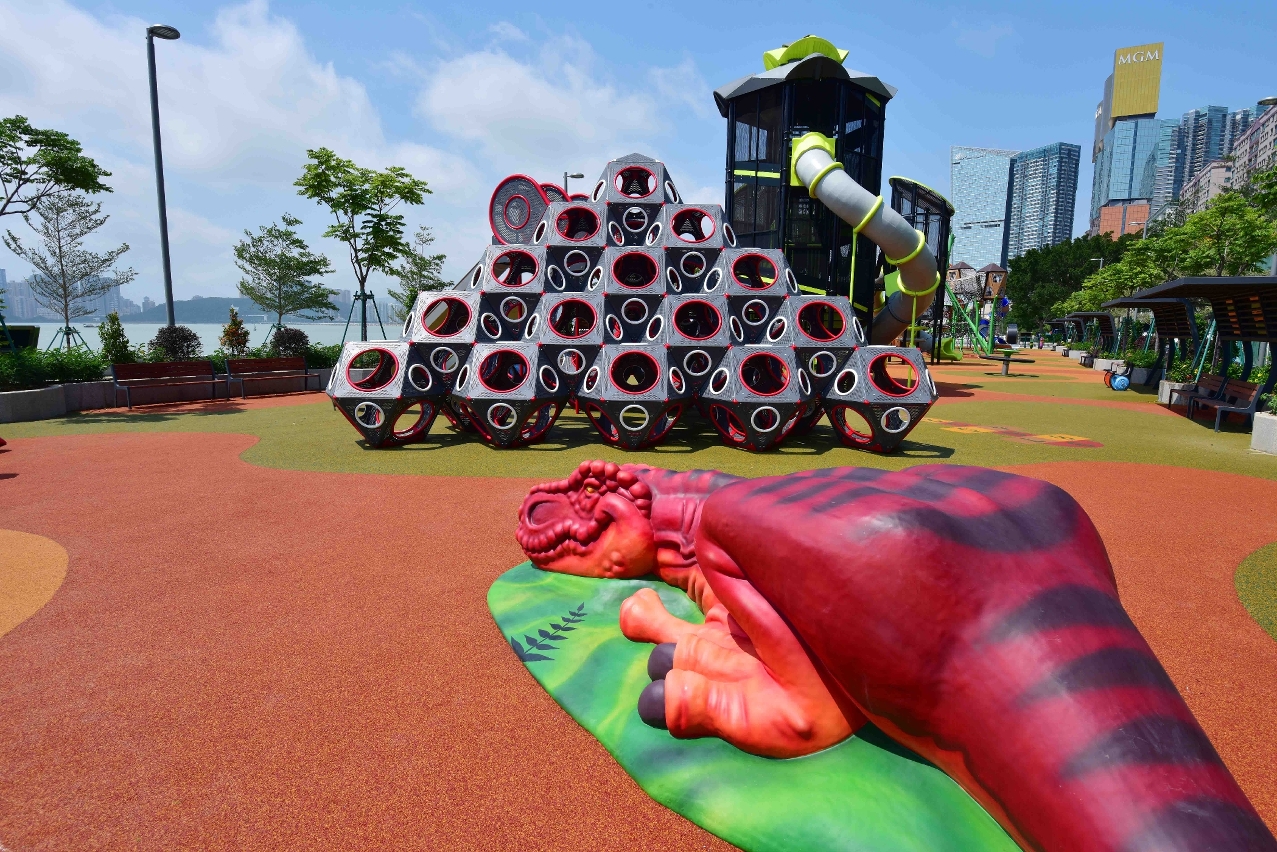 為優化新口岸海濱環境,回應公眾對休憩空間的需求,去年,市政署於科學館至觀音像的一段海濱沿岸,興建總面積約一點五萬平方米的觀音像海濱休憩區,設海濱步行徑以及多功能球場、門球場、滾軸溜冰場等健身康樂設施,而佔地面積約二千七百平方米的兒童遊樂場,引入了新穎的遊樂設施,包括親子共融遊具,並劃分不同年齡區域,設數組適合五至十二歲,含攀爬元素,可鍛鍊身體協調性及平衡感,兼具適度挑戰性的大型遊具,讓小朋友在玩樂中學習不同技巧及鍛鍊體能。