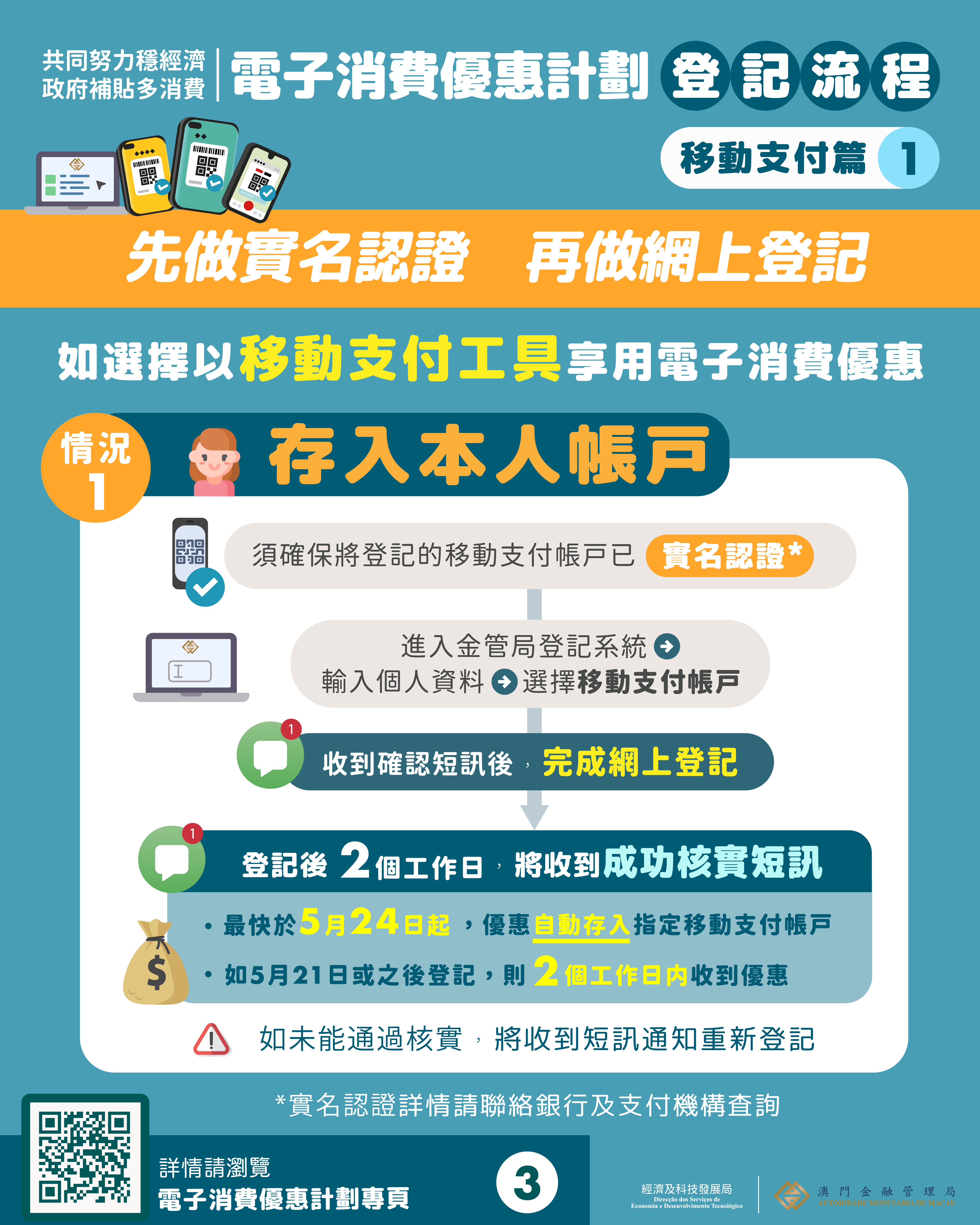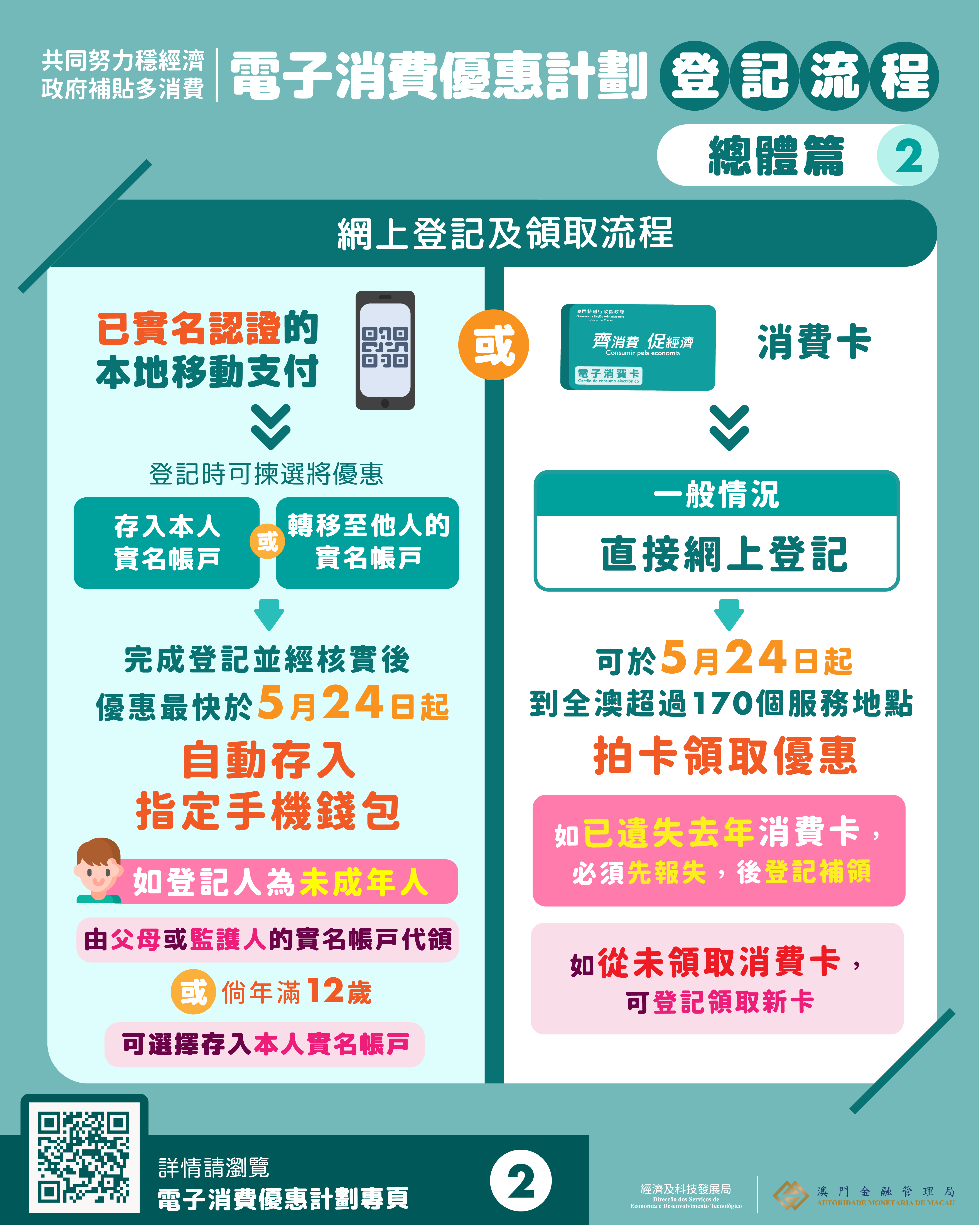 此外,多間金融機構5月亦將於週末加開部份網點,協助有需要的居民進行登記。開放的網點地點及服務時間,可聯絡相關金融機構查詢。