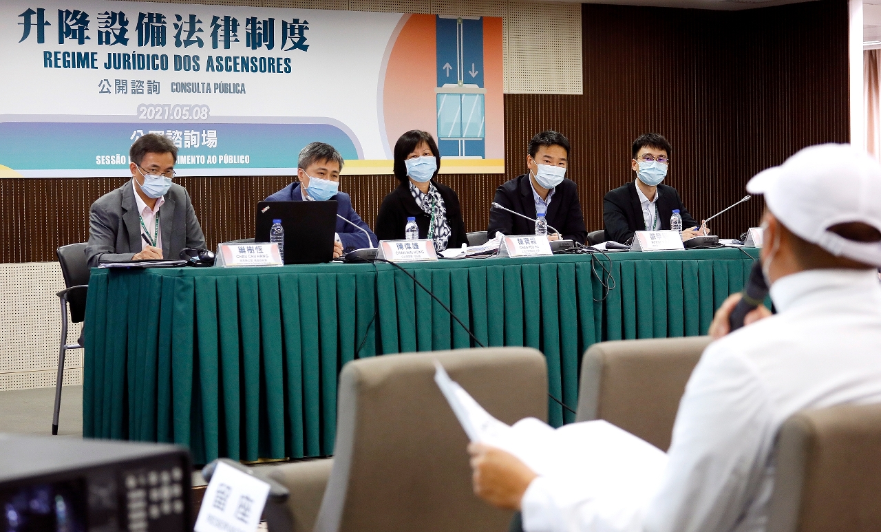 《升降設備法律制度》公開諮詢今(8)日於澳門馬交石炮台馬路33號五樓多功能廳舉行首場公眾諮詢會,數十位市民參加,主要關注各關係方的權責、現有升降設備業界如何適應法律的實施,以及是否有足夠專業人士滿足市場需要等。