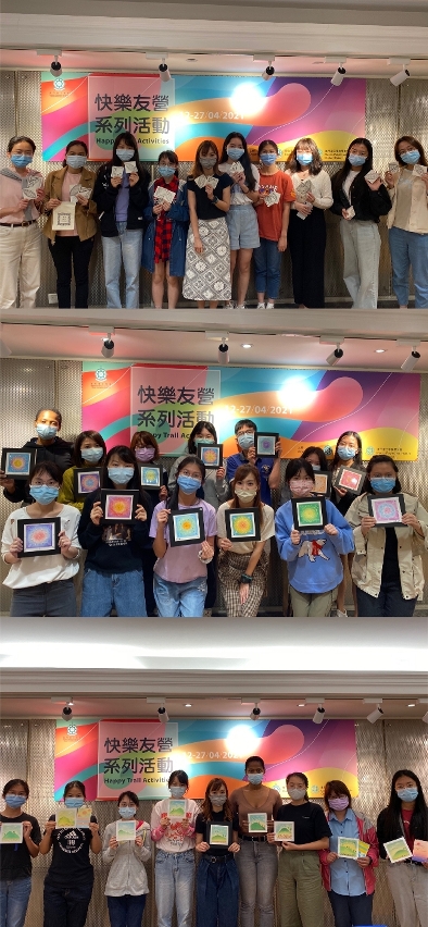 “快樂友營系列活動”設有7個工作坊,包括:頌缽聲頻療癒靜心體驗、和諧粉彩、肌力訓練營、禪繞畫、曼陀羅粉彩、快樂方程式及思維導圖工作坊,活動共吸引百多名學生參與。就讀大數據與物聯網碩士課程的劉同學表示,活動項目多元化,除身心發展外,還可提升思維表達,增強社交能力,透過快樂方程式工作坊,更能領略快樂之道,對提升抗壓能力很有幫助。主修中英翻譯專業的尹同學表示,透過頌缽聲頻體驗,體會聲音共鳴可以達至心靈療癒的效果,讓她開拓紓緩情緒的嶄新領域。修讀國際漢語的佛得角學生Laidinha表示,希望藉此學習走出自己的舒適圈,透過積極參與各項活動,樹立正確人生觀及價值觀,助她日後迎接各項機遇與挑戰。