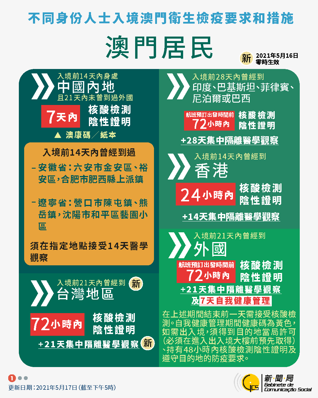 【圖文包】2021/5/17最新入境澳門衛生檢疫要求和措施