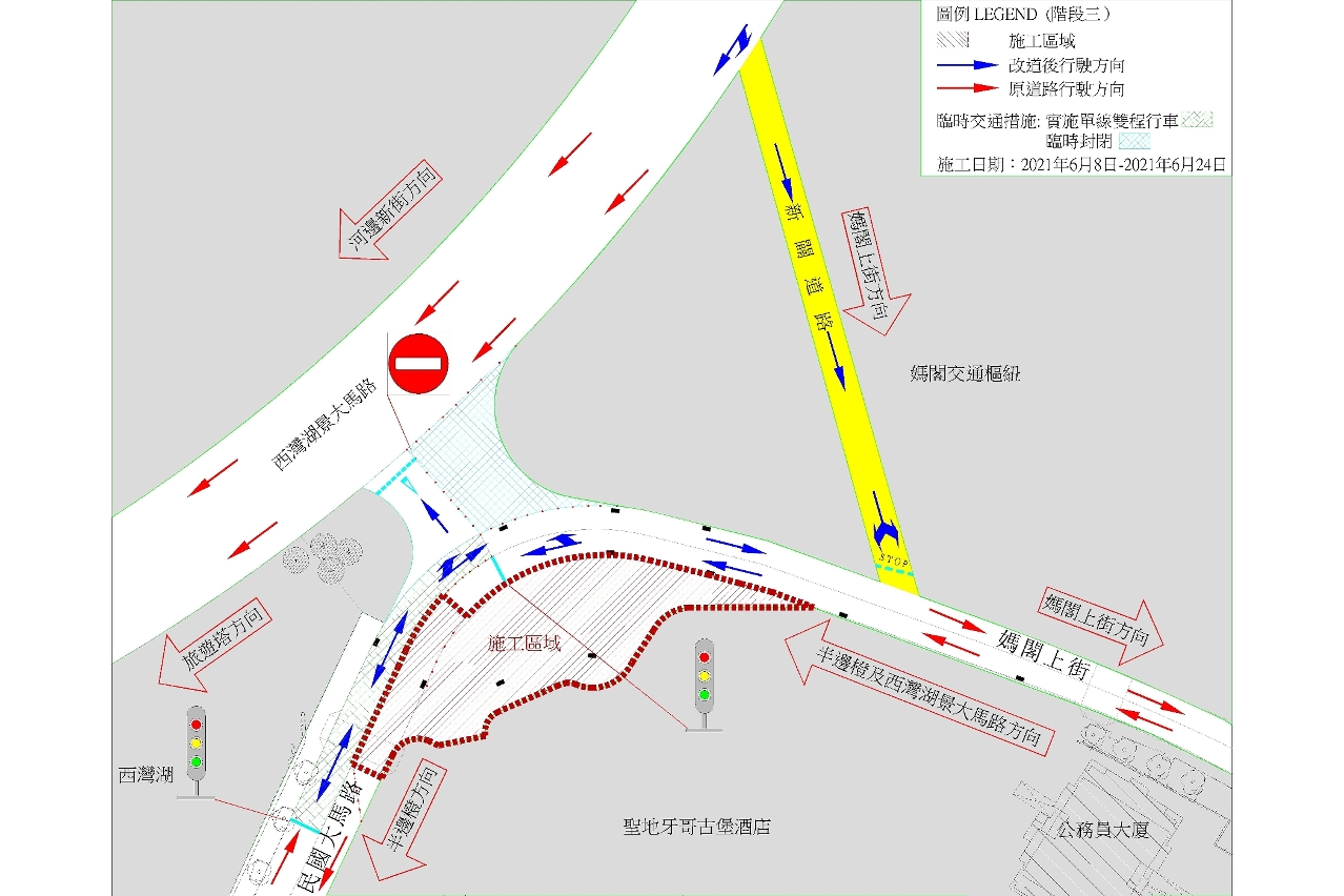 • 媽閣上街及民國大馬路一帶交通改道(階段三)