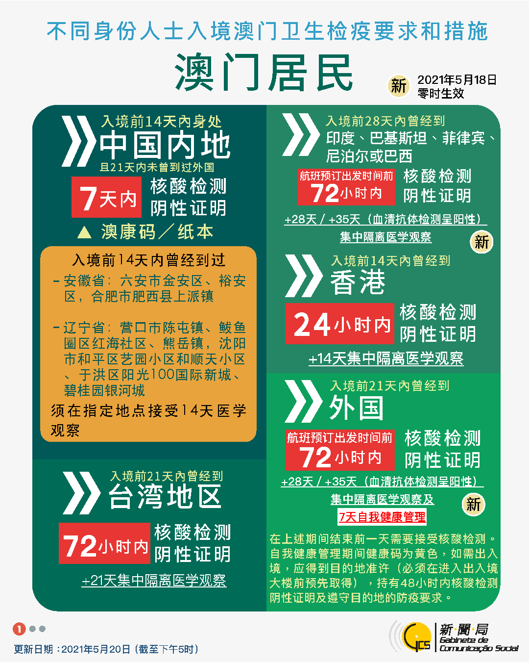 【圖文包】2021/5/20最新入境澳門衛生檢疫要求和措施