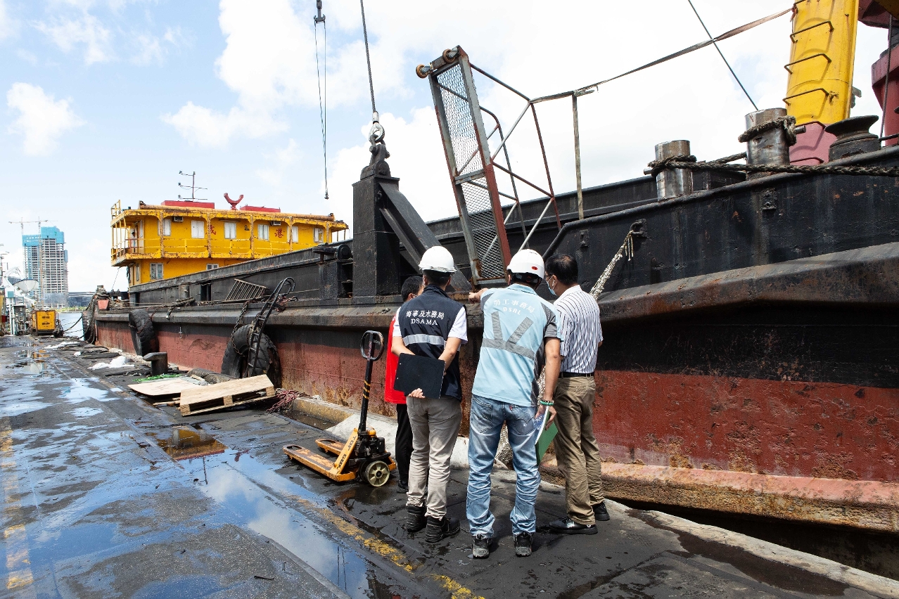 為提高貨運碼頭和海上貨運業界對安全作業的關注,海事及水務局聯同勞工事務局於昨日(26日)早上到內港多個碼頭,針對碼頭及躉船的操作安全和職業安全進行突擊聯合巡查。