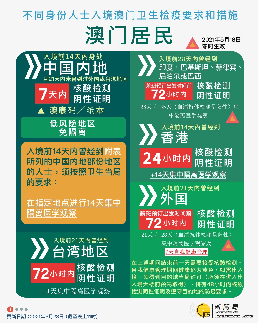【圖文包】2021/5/28最新入境澳門衛生檢疫要求和措施