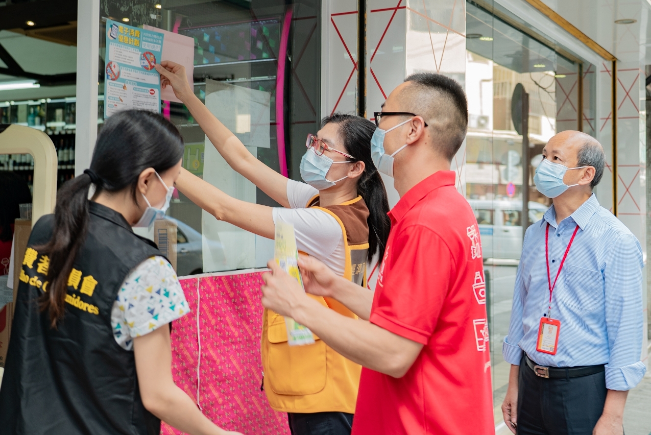 同時,為讓居民及商戶瞭解電子消費優惠的使用規則,經科局持續廣泛宣傳,已製作宣傳海報,並透過實地向商戶派發、商會協助向會員分發等方式,在市面多個商業場所張貼。