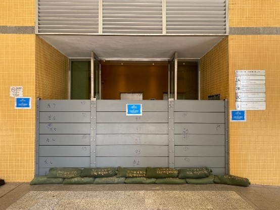 因應風季來臨,社會工作局轄下服務單位聯同處於低窪地區的社服設施合共44間設施及單位,於本年4月下旬至5月期間演練安裝防水閘,掌握人力資源運用並熟習安裝步驟,以備在實際操作時能快速有效安裝防水閘,發揮防水功能。