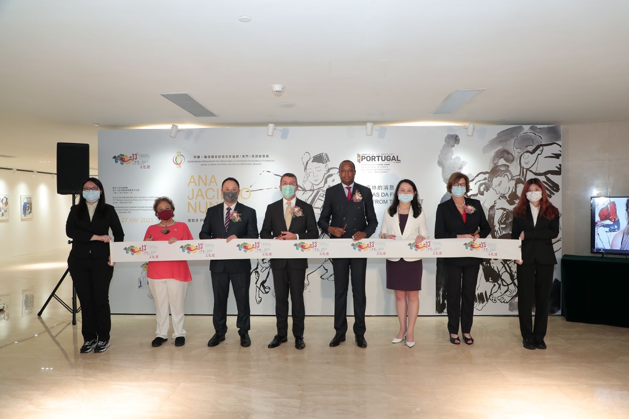 由中葡論壇(澳門)常設秘書處主辦的“第十三屆中國—葡語國家文化週 — 葡光十色”系列展覽之葡萄牙藝術家ANA JACINTO NUNES “來自森林的消息”作品展於6月11日(星期五)下午6時在中國與葡語國家商貿合作服務平台綜合體舉行開幕式。中葡論壇常設秘書處副秘書長贊東出席並致辭。葡萄牙駐澳門及香港總領事歐冠溢、外交部駐澳門特區特派員公署領事部副主任李一君及澳門葡人之家協會主席安瑪莉等嘉賓應邀出席主禮。中葡論壇常設秘書處副秘書長黃偉麟、葡萄牙派駐代表布思麗在座。