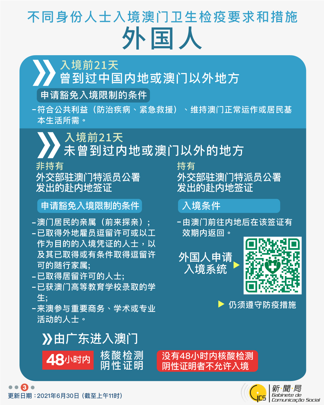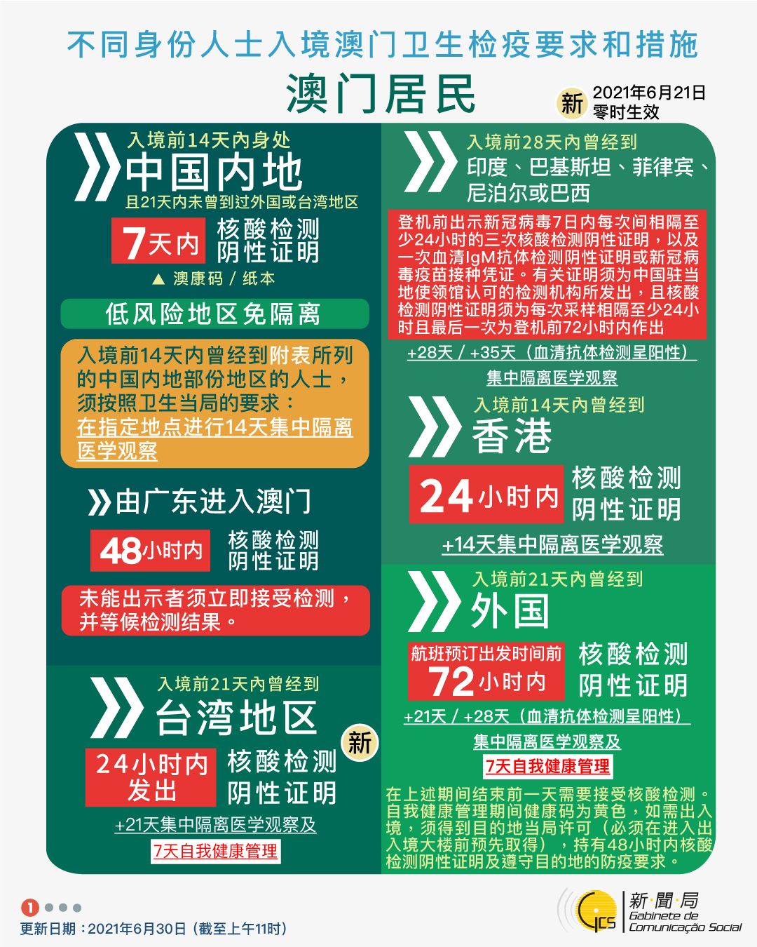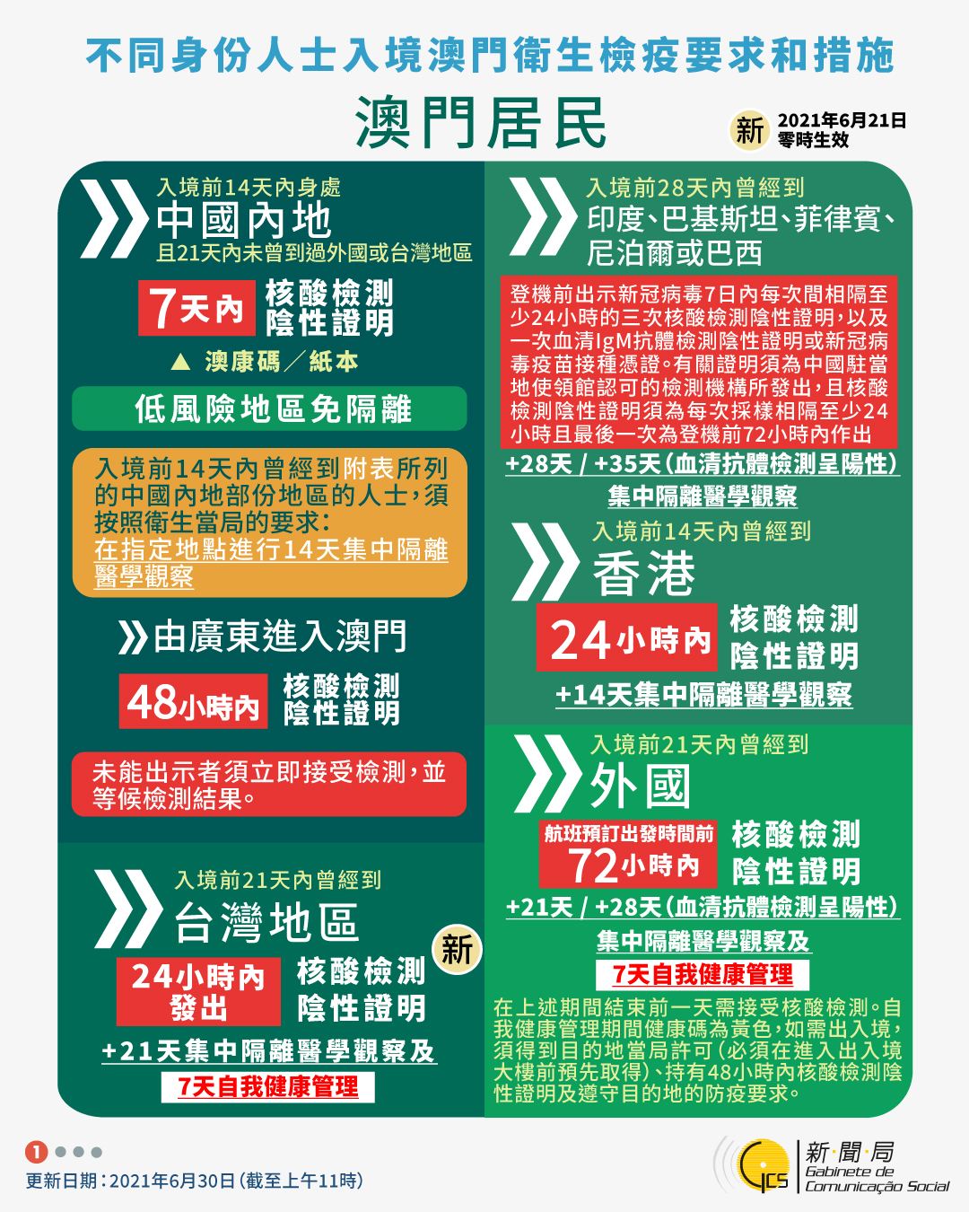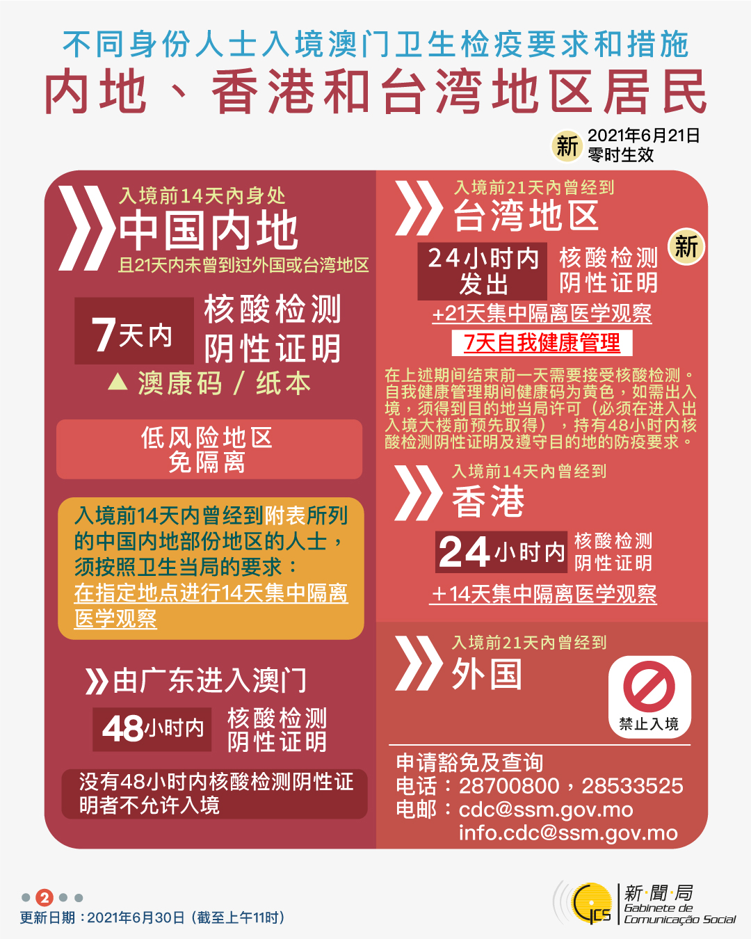 【圖文包】2021/6/30最新入境澳門衛生檢疫要求和措施