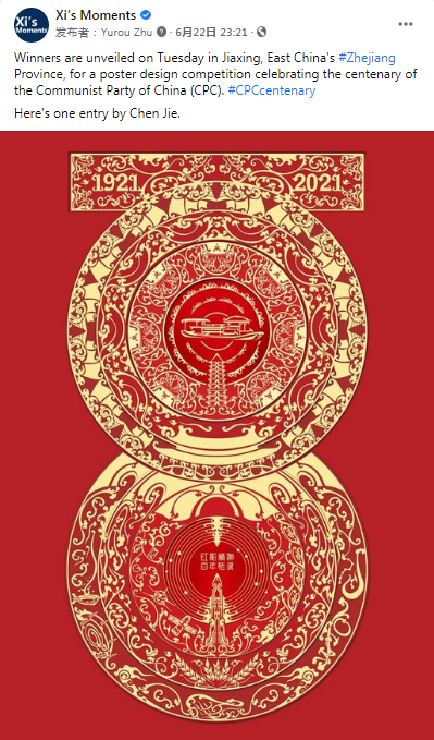 澳門大學特聘教授梁藍波和澳大博士生楊超以全國百名特邀設計師身份參加“百年青春:慶祝中國共產黨成立100週年海報設計大賽”作品展,是全澳唯一獲邀的兩位設計師。此展獲得了巨大的成功,相關展覽信息和部分獲獎作品獲習近平總書記的Twitter和Facebook官方帳號發佈。