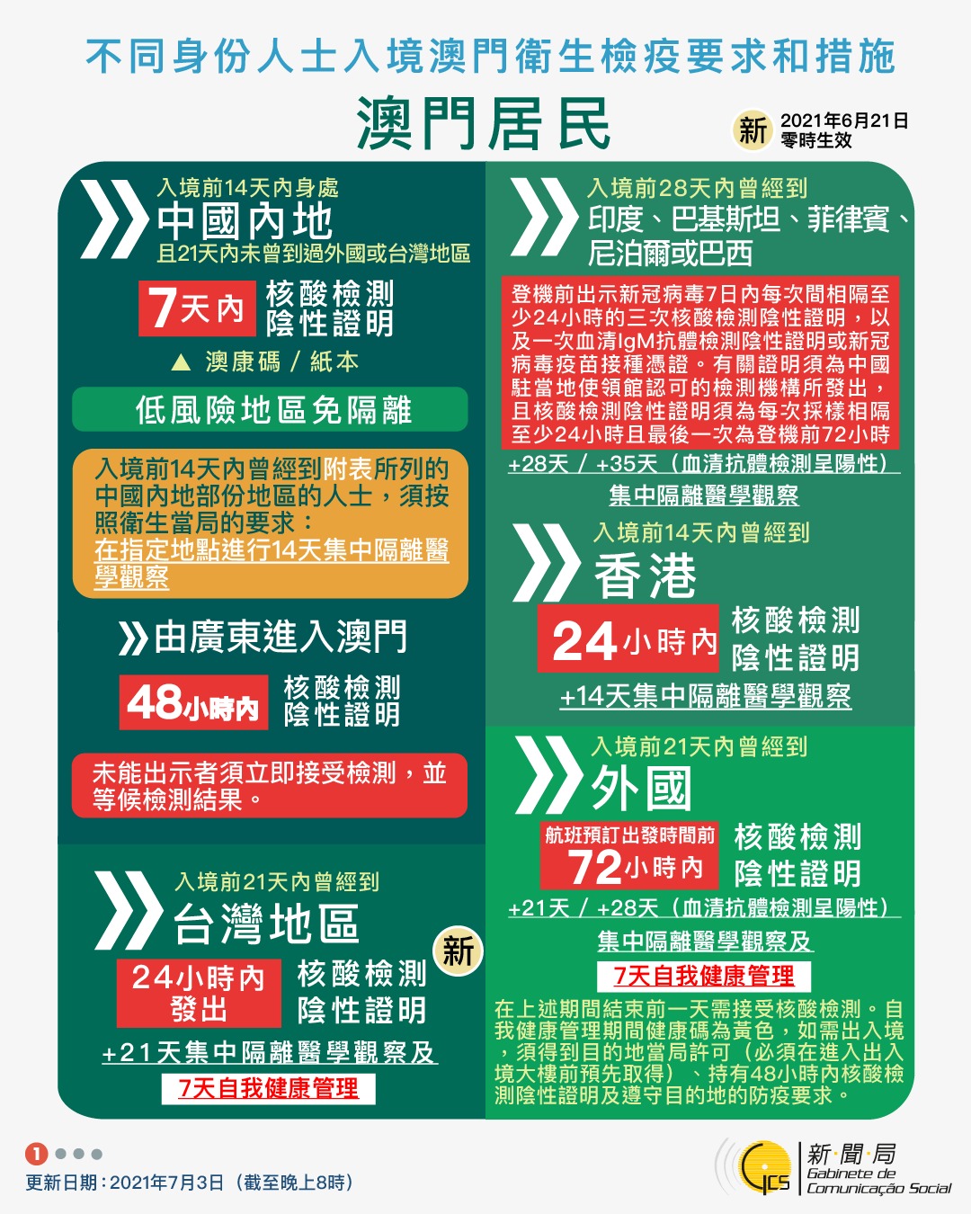 【圖文包】2021/7/3最新入境澳門衛生檢疫要求和措施