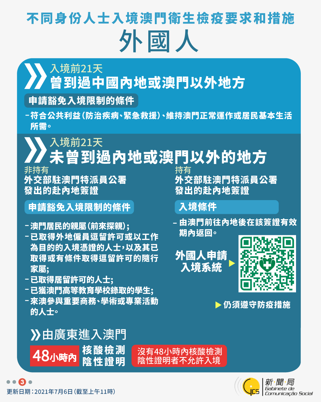 【圖文包】2021/7/6最新入境澳門衛生檢疫要求和措施