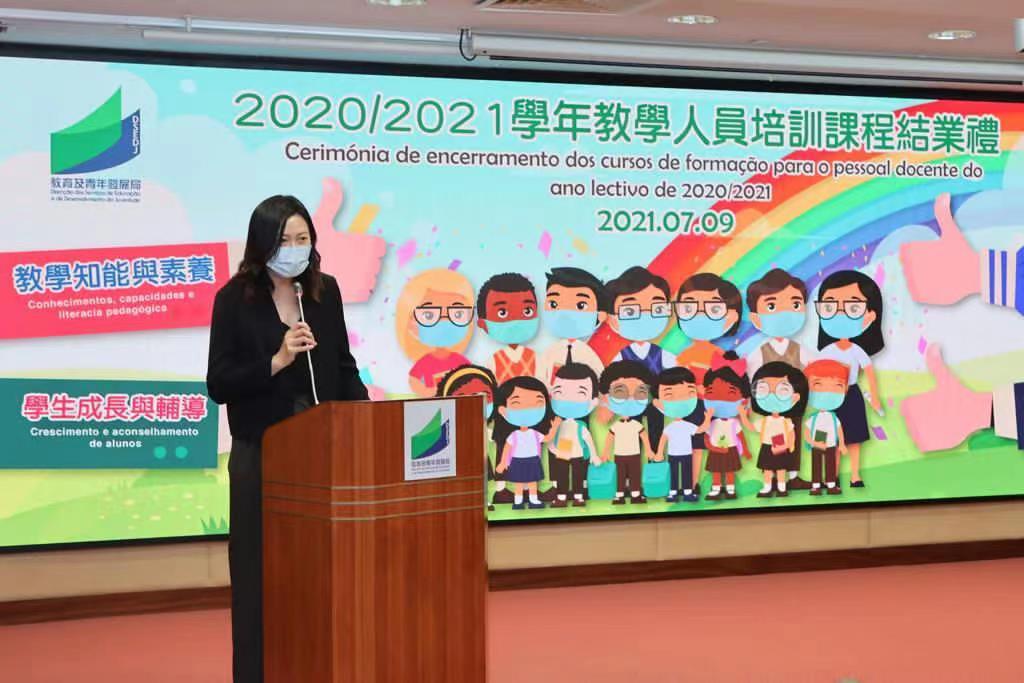 為了與教學人員共同分享完成培訓的碩果與喜悅,同時藉此鼓勵教學人員持續進修,為教育質素不斷的提升作出貢獻,以期建立師德與專業兼備的師資隊伍,教青局於7月9日下午6時在總部一樓仲尼堂舉行了“2020/2021學年教學人員培訓課程結業禮”。教青局局長老柏生、中央人民政府駐澳門特別行政區聯絡辦公室教育與青年工作部副部長苟人民、教青局副局長龔志明、丁少雄、阮佩賢、澳門中華教育會陳虹會長、澳門天主教學校聯會周伯輝會長、澳門公職教育協會許淑貞監事長以及培訓課程的學員代表,合共約80人出席。