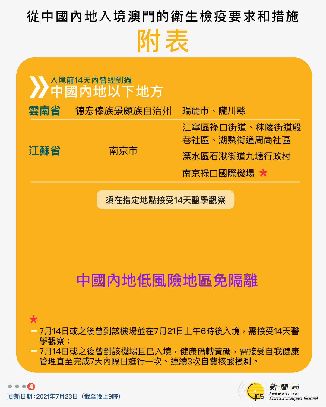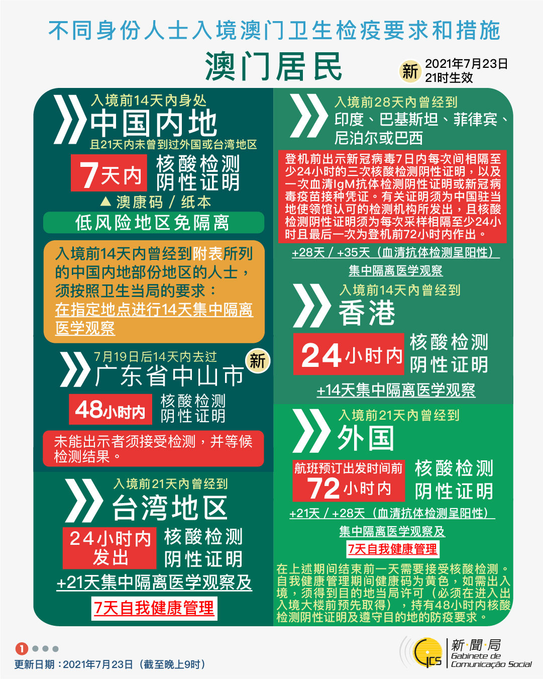 【圖文包】2021/7/23最新入境澳門衛生檢疫要求和措施
