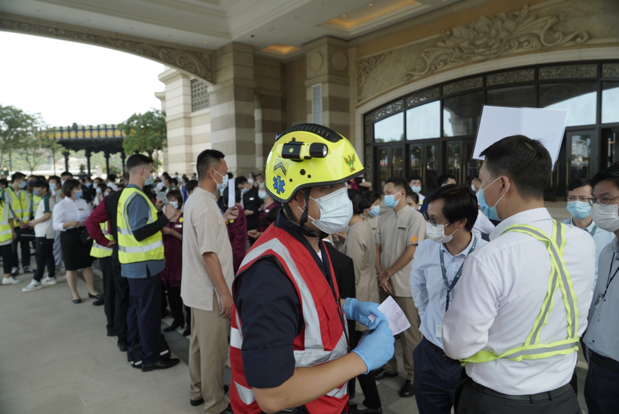 演習模擬在澳門上葡京綜合度假村2樓餐廳內有一用電的爐頭失火,觸發啟動相關消防系統,保安部人員發現事故後,按照內部應急計劃採取安全措施及疏散相關人員到逃生集合點,並立即報警求助。消防局接報後,立即派遣11輛緊急車輛及50名隊員趕赴現場進行滅火及疏散行動,過程中有1名餐廳員工因吸入濃煙不適、另有2名餐廳員工於疏散時感到不適,以及於集合點有2名腿部受傷的傷者,消防局救護人員為上述不適及受傷人士進行護理及模擬送院。