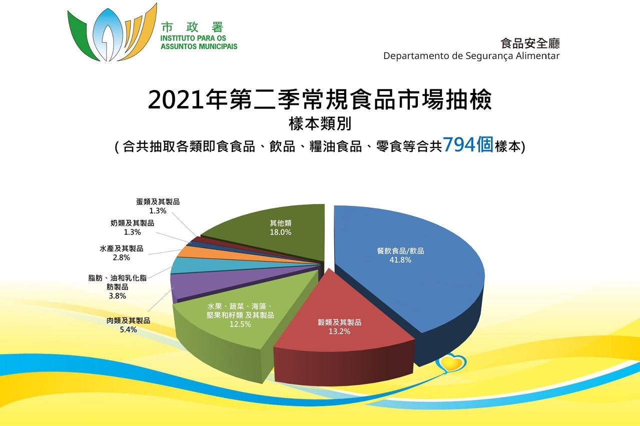 市政署持續食品安全監督抽檢工作,評估市售食品的安全風險及衛生狀況。在2021年第二季期間於市面上共抽檢了七百九十四個食品樣本,進行了微生物、化學及輻射檢測,合格率為99.7%。