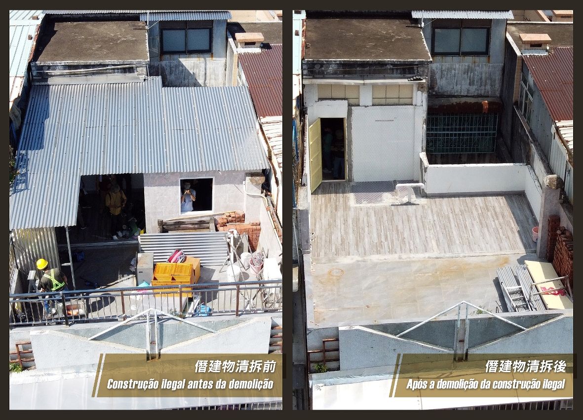 政府“非法工程跨部門常設拆遷組” 持續打擊非法工程,日前先後兩次展開了草堆街及關前後街共三間天台屋之清拆行動。佔用樓宇共同部分或空間僭建,會危害自身及他人生命財產安全,土地工務運輸局呼籲市民顧己及人,切勿進行非法工程,更應申請自行清拆僭建物,保障大廈及公眾安全。