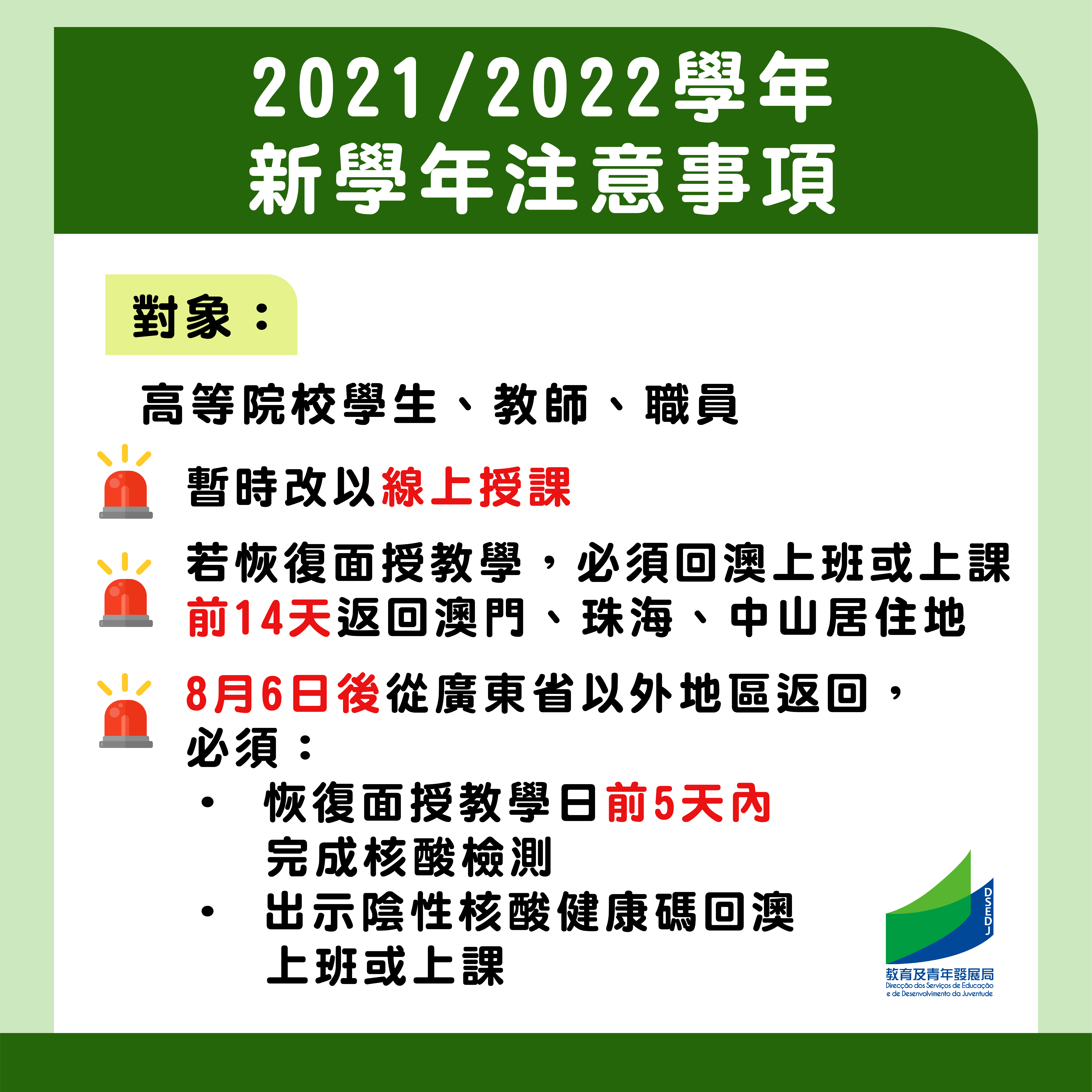 2021/2022學年新學年注意事項—高等院校學生、教師、職員