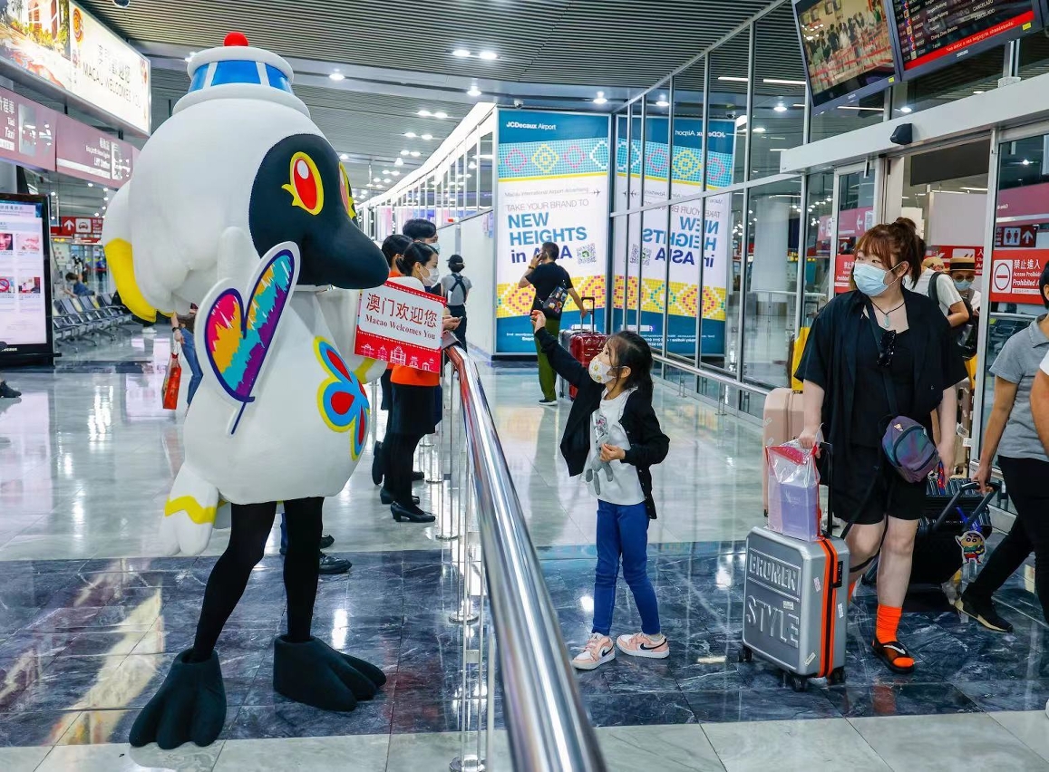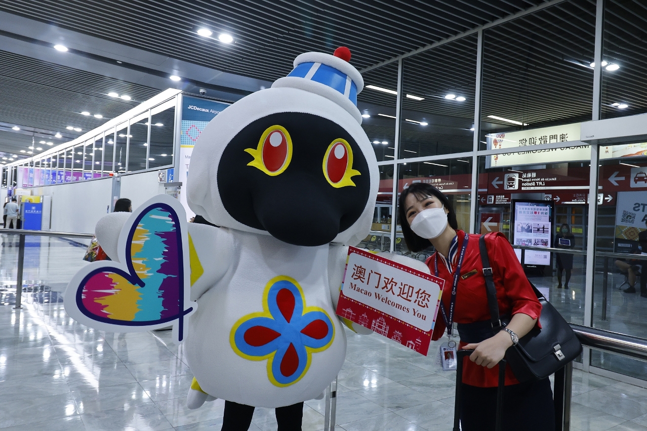 昨日6航班抵澳,吉祥物“麥麥”熱情歡迎旅客