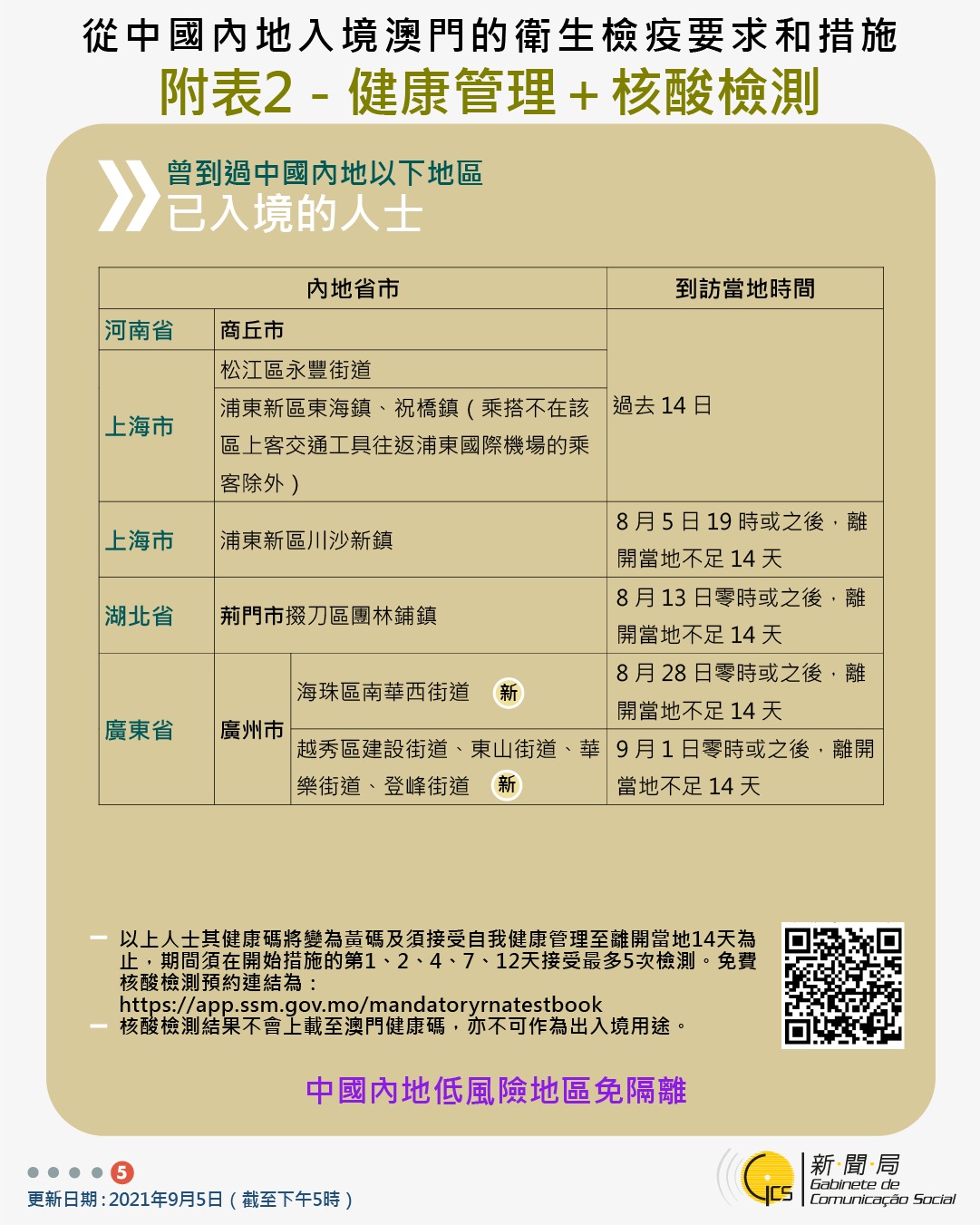 【圖文包】2021/09/05最新入境澳門衛生檢疫要求和措施