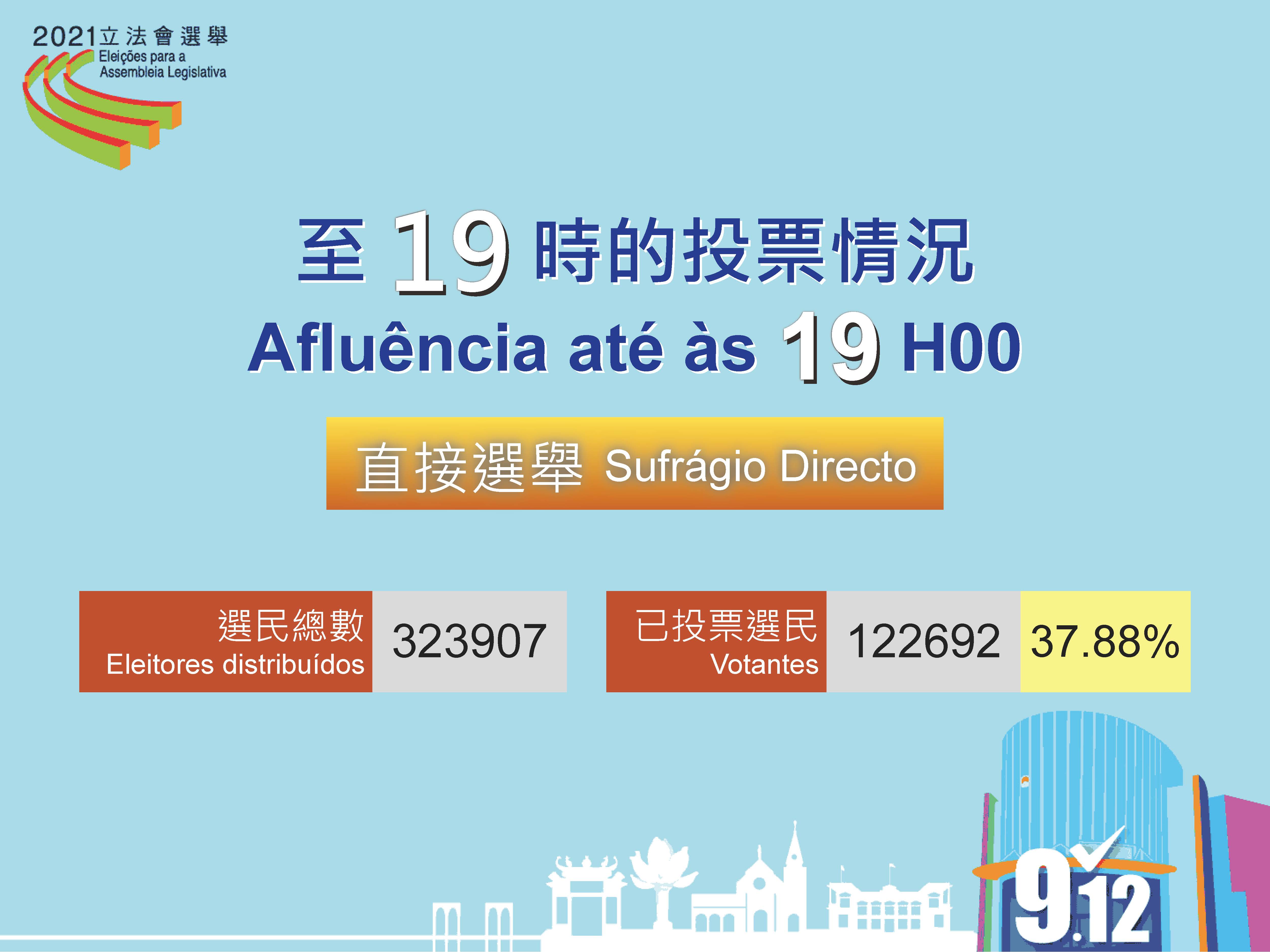 9.12立法會選舉投票已進行了10個小時,截至晚上7時,直選共有122,692人投票,投票率為37.88%;間選共有6,600人投票,投票率為82.34%。