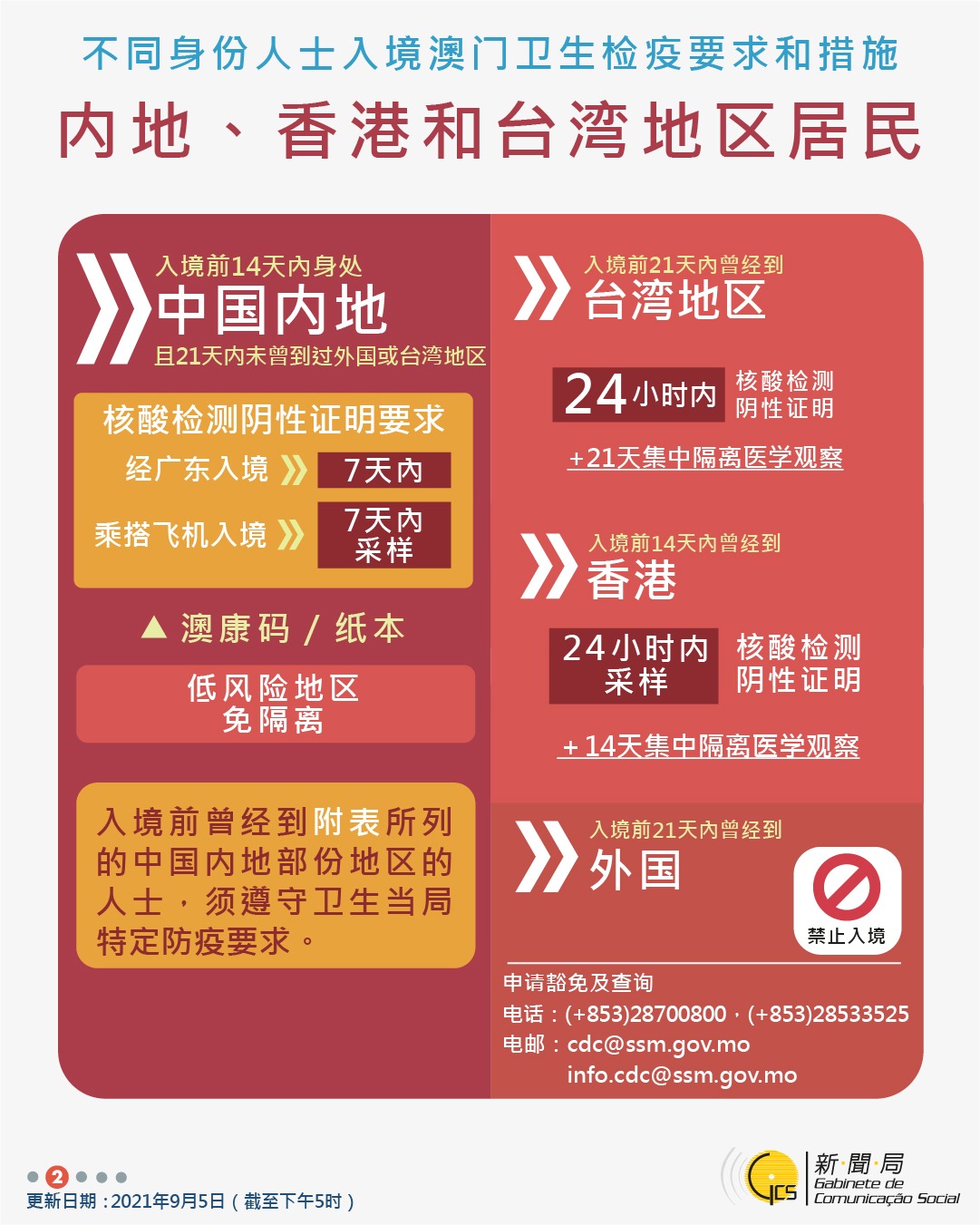 【圖文包】2021/09/14最新入境澳門衛生檢疫要求和措施