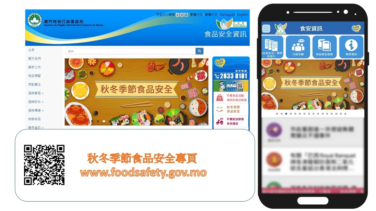 此外,市政署特別提醒市民,就近年新興透過網購或代購外地銷售的月餅等,應認清其可能存有的食品安全風險,選購時須了解清楚食品的貨源、運輸及貯存條件及衛生狀況。市政署製作了一系列的宣導小冊子,包括安心享用中秋月餅、安心燒烤、安心享用火鍋等,提醒市民歡度佳節同時須注意的食品安全事項,並於食安資訊網站設置「秋冬季節食品安全」專頁,市民可透過食安資訊網www.foodsafety.gov.mo或下載食安資訊手機應用程式「食安資訊App」,瞭解更多食安資訊。