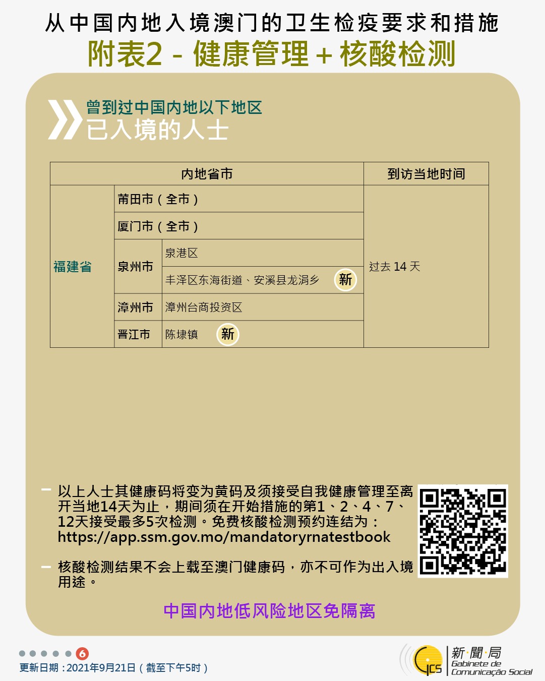 【圖文包】2021/09/21最新入境澳門衛生檢疫要求和措施