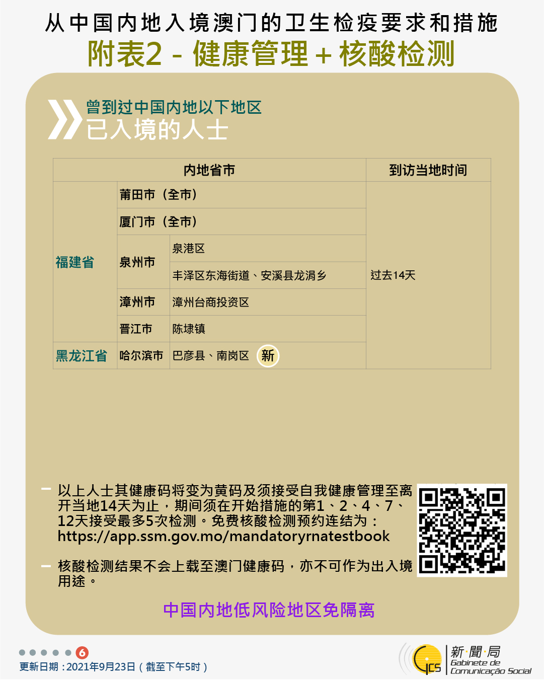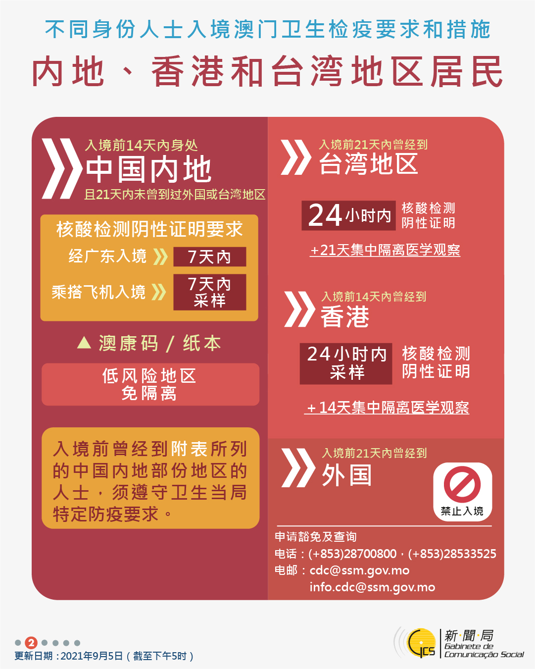 【圖文包】2021/09/23最新入境澳門衛生檢疫要求和措施