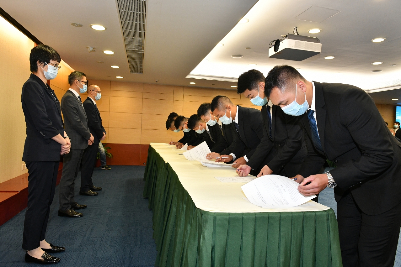 司法警察局於2021年9月23日在總部大樓舉行“第20屆實習刑事偵查員培訓課程”結業典禮及簽約儀式,40名學員完成五個多月的培訓課程,獲頒發結業證書,並在薛仲明局長、杜淑森和陳堅雄兩位副局長,以及各部門主管的見證下,簽約成為實習刑事偵查員,隨即被分派到多個刑偵附屬單位展開為期一年的實習,參與各項執法實務工作。為配合特區政府防疫工作,全部出席人員均做好防疫措施。