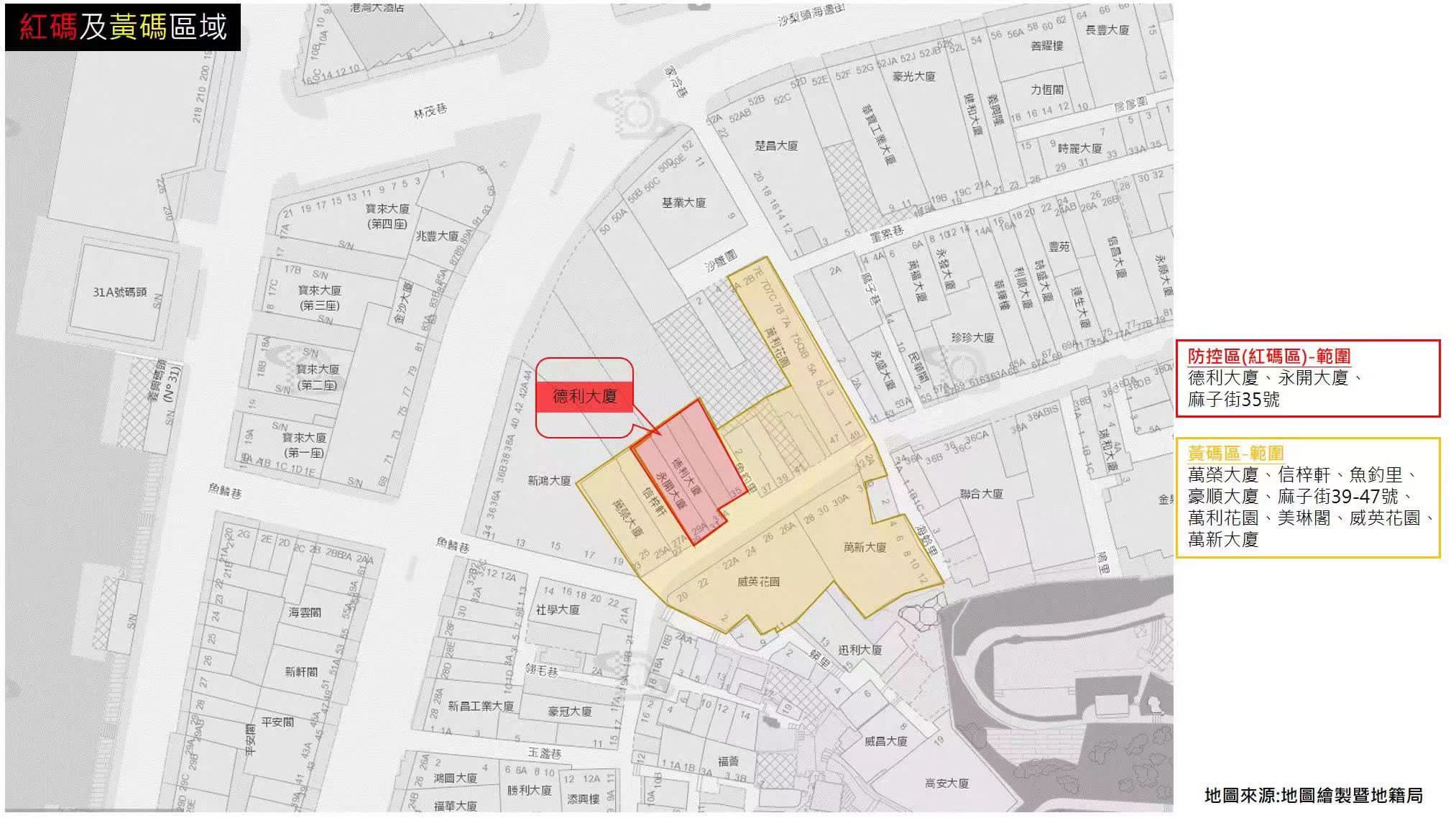 因應第65例患者居住地點在麻子街31號德利大廈4樓B,故此,將德利大廈、永開大廈、麻子街35號列為防控區,實施健康碼紅碼管制,其他措施包括就地進行核酸檢測,暫時安排1、3、5天做核酸檢測。除工作人員外,其餘人士只准進入不准外出,只能最低限度活動,例如在指定地點領取配給品;實行全限制封閉式管理,並根據實際情況就地隔離醫學觀察或轉移至適當地點接受集中管理醫學觀察。