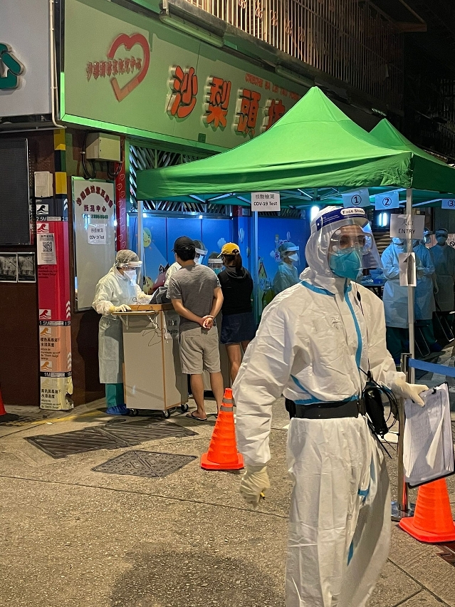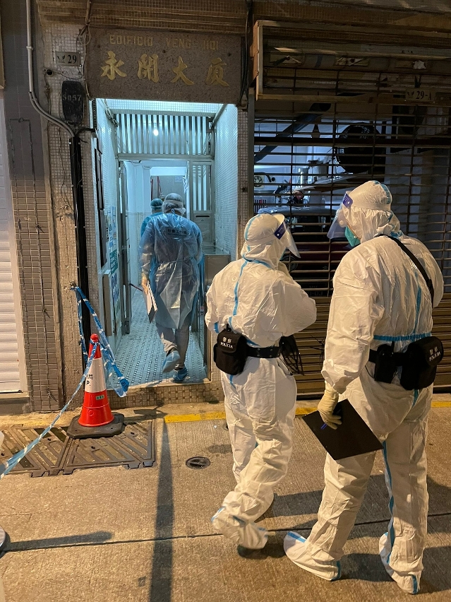 早前,市政署已完成上址大廈公用空間之大型清潔及消毒工作,並於防控區內搭建臨時核酸採樣站及前線協調站,以便衛生當局開展核酸篩查及後續工作。如對防疫措施有任何查詢,可致電新型冠狀病毒感染應變協調中心查詢熱線28700800。