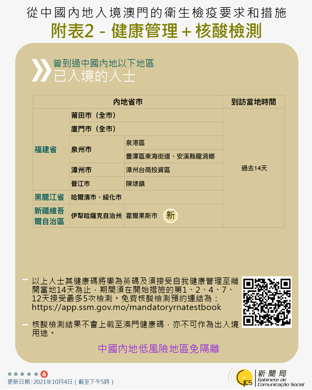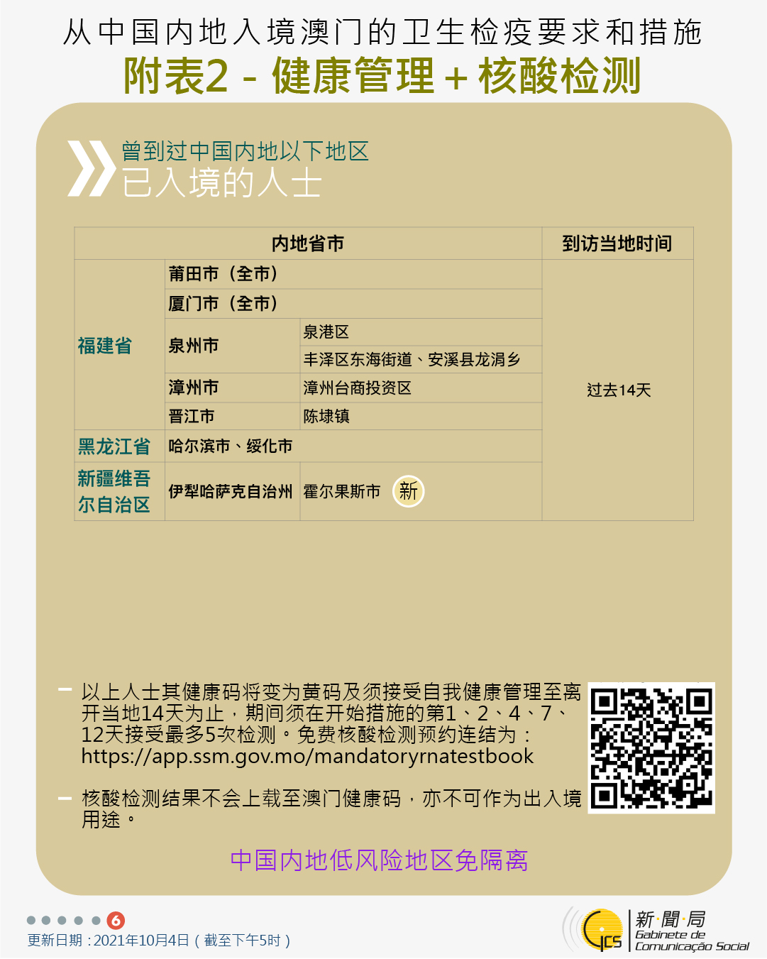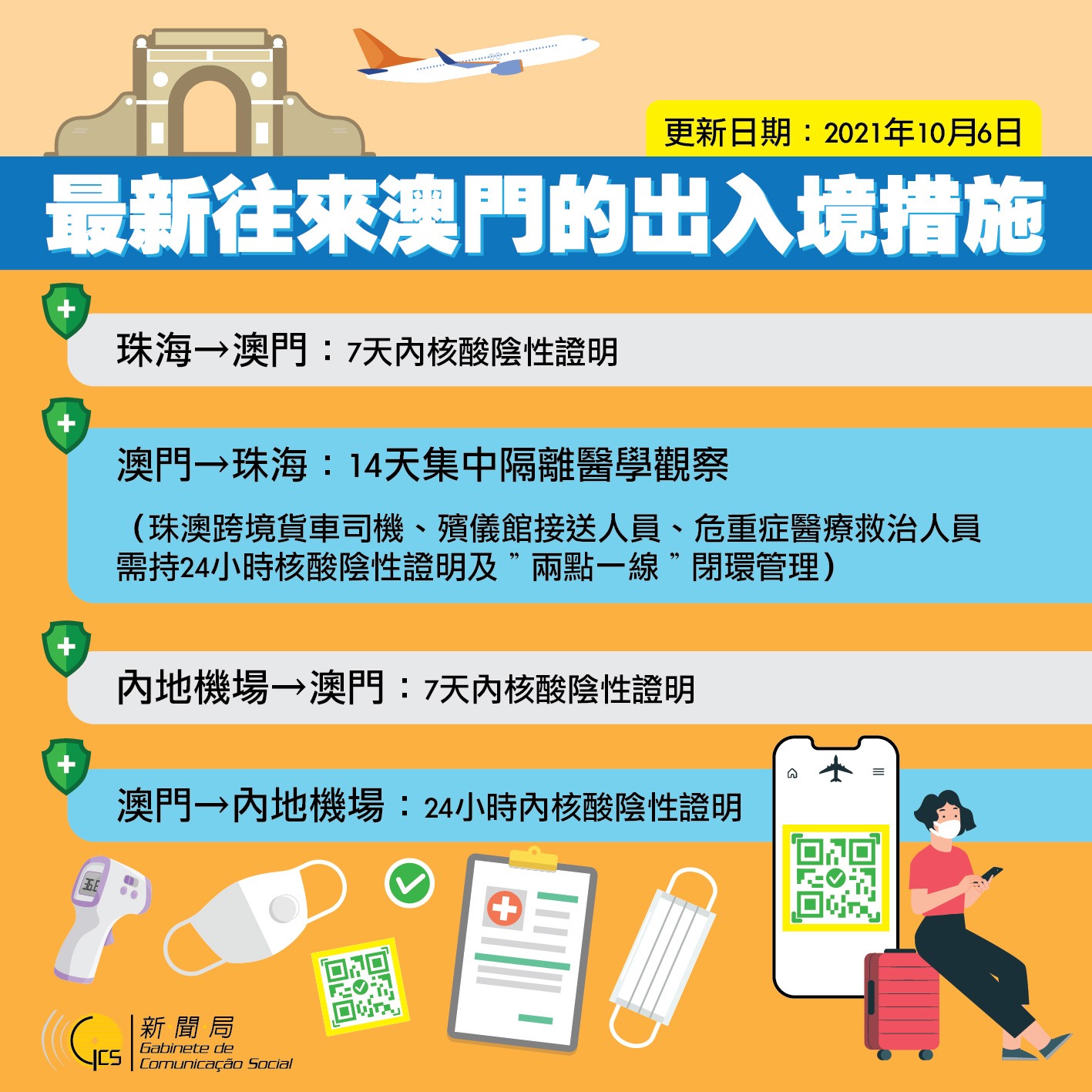 【圖文包】10月6日最新往來澳門的出入境措施