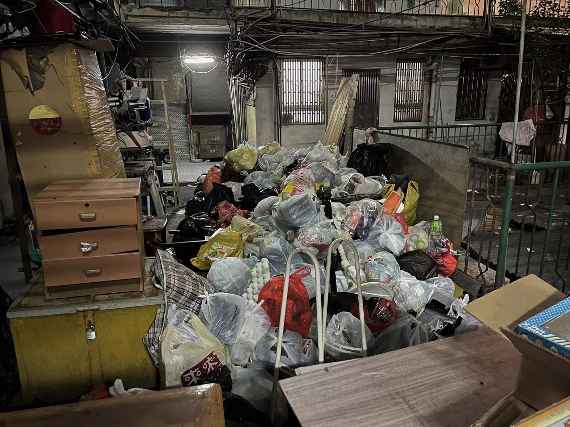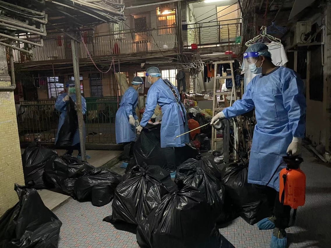 維生及支援小組於區域圍封當天已向新美安大廈居民派發指引,要求住戶將生活垃圾妥善包紮以確保不滲漏,於每晚六時至八時前放置於單位門前。市政署每晚派出至少七名衛生人員於九時後上門收集生活垃圾,並對梯間走廊進行清潔,平均每晚清理超過一百袋大垃圾袋,可裝滿十個一千一百公升的大型垃圾桶,平均需要至少五小時。惟近日發現有部份住戶不按指引依時棄置垃圾,亦於大廈天井平台等公共部份棄置垃圾及雜物,當中包括大型廢舊家具、床舖、煮食爐具、裝修廢棄物以及未有妥善包好的廚餘及口罩等,嚴重損害環境衛生,加重清運負擔。