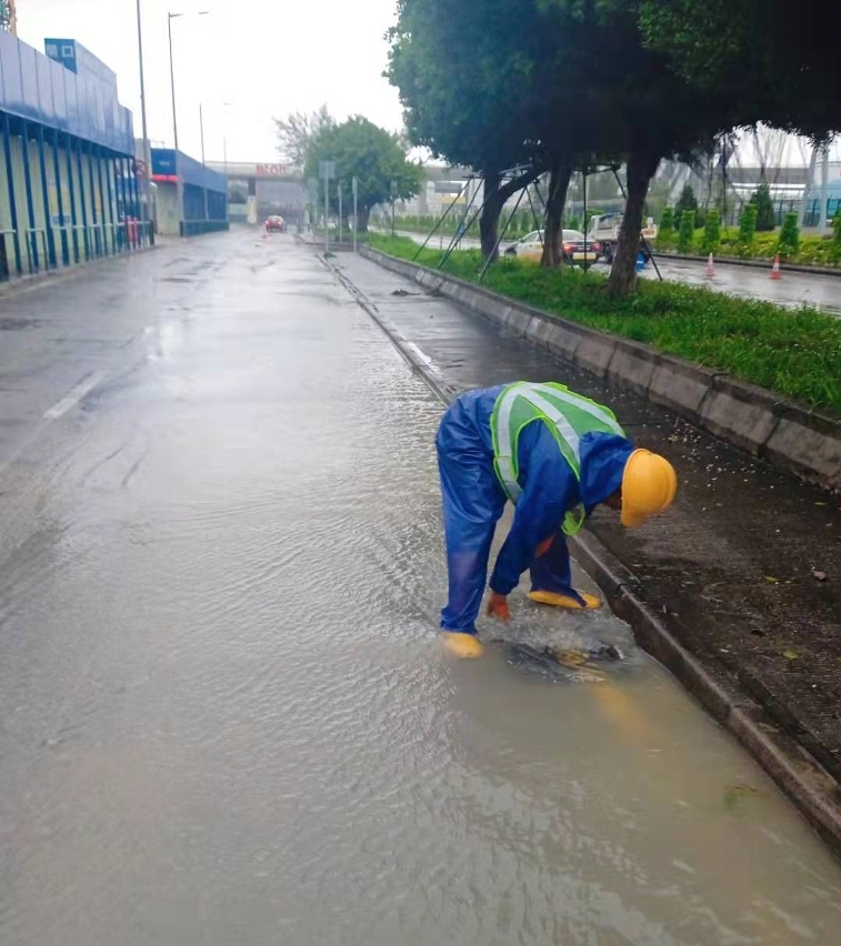 • 颱風期間,工作人員清理渠口垃圾以加快雨水排放