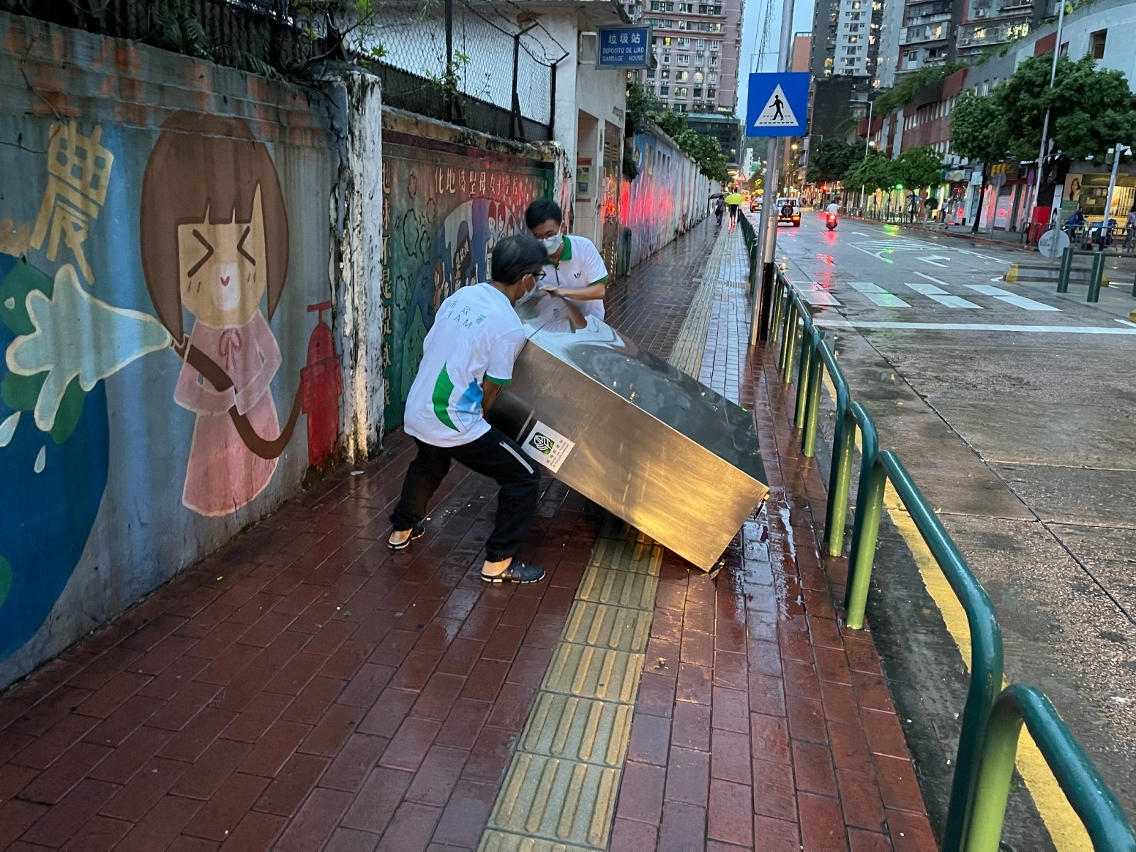 • 風後巿政署隨即派員巡查垃圾收集設施,扶正被吹倒的設施